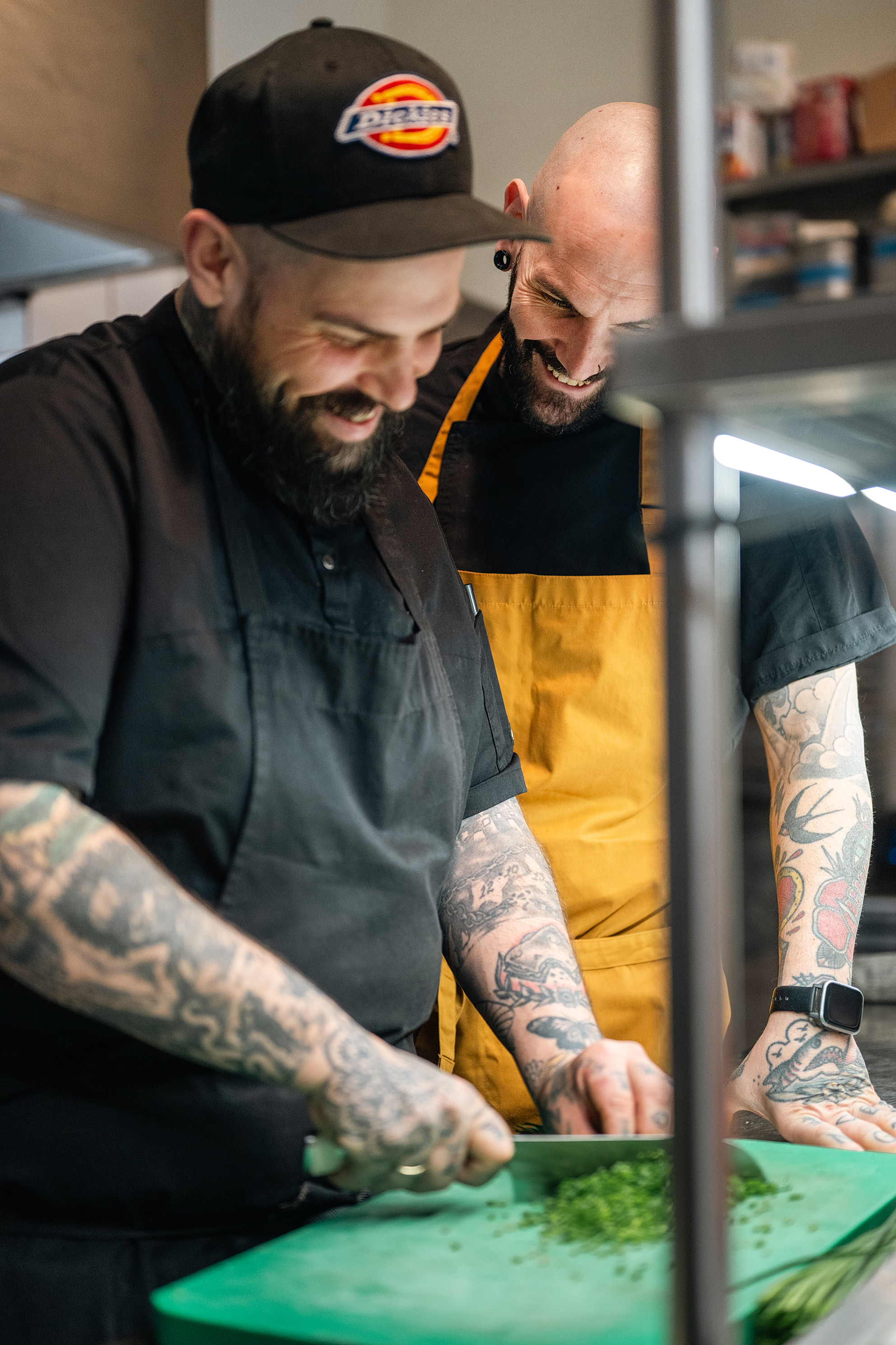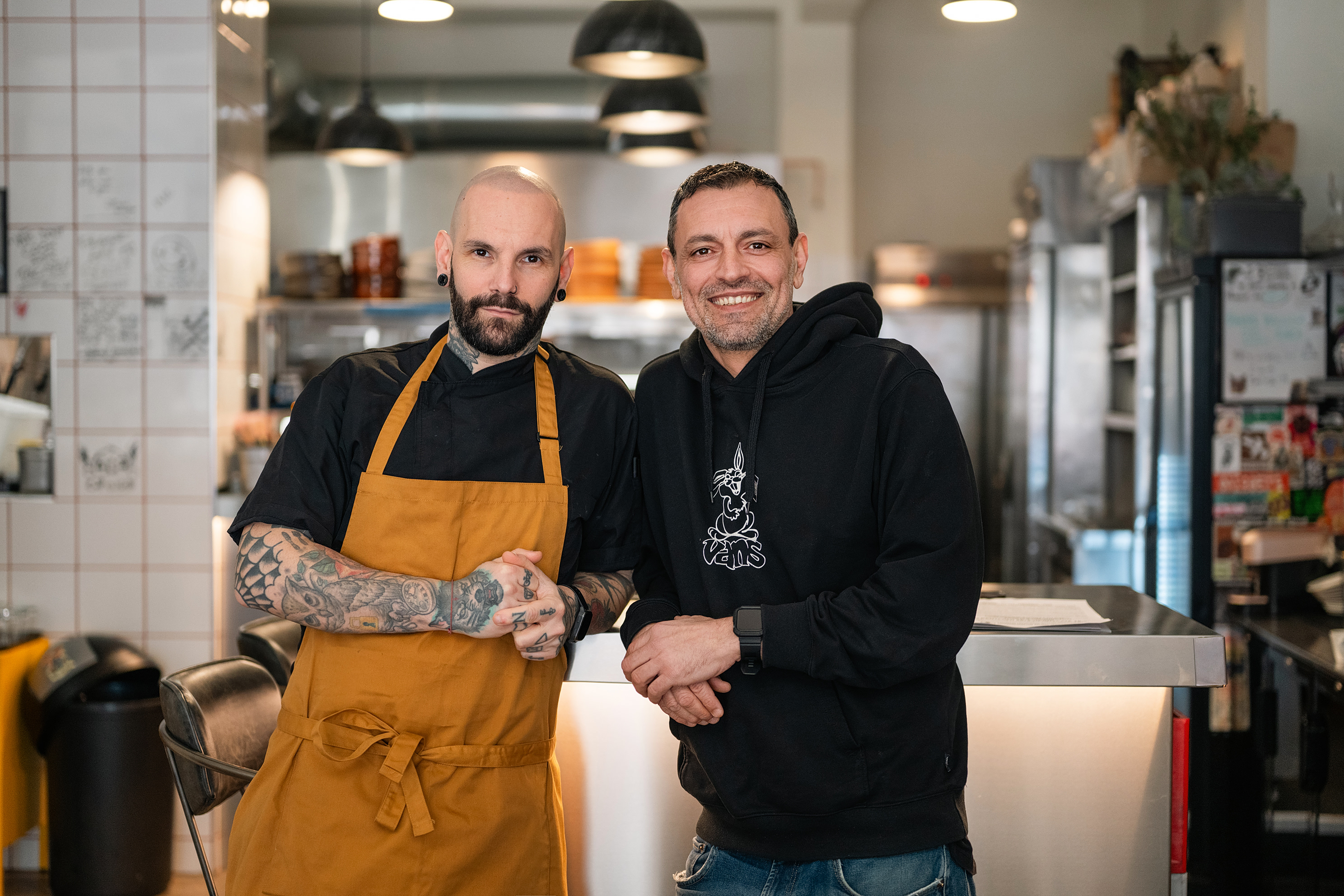 Ο Χρήστος με τον Βασίλη Καλλαντζή στην κουζίνα του Ράντικαλ. Φωτό: Αλέξανδρος Αλεξανδρής