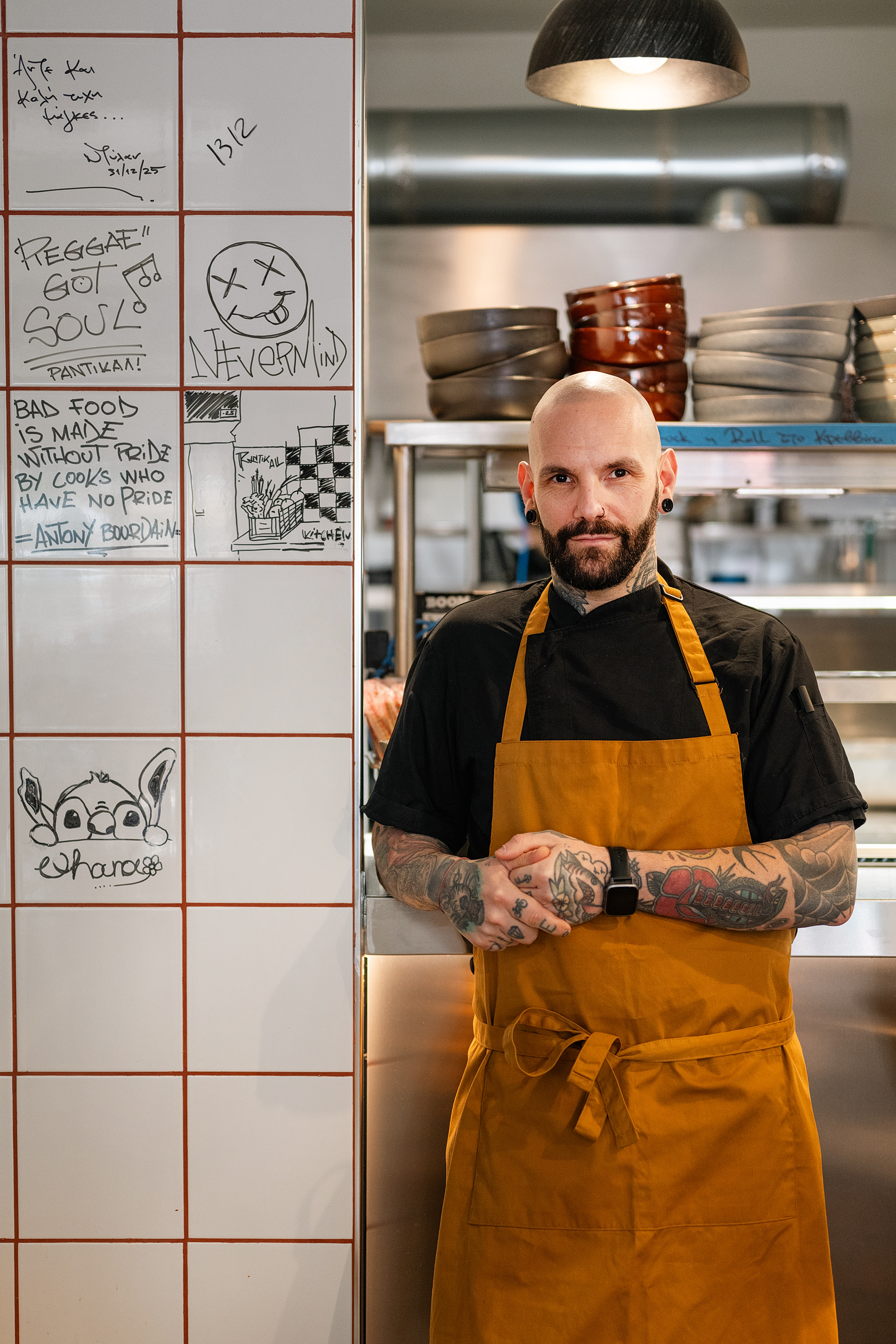 Αυτή η στάση τον οδηγεί και σε μια κριτική ματιά απέναντι στη σύγχρονη αθηναϊκή γαστρονομία. Δεν τον ενοχλεί η εξέλιξη, δεν τον ενοχλεί η ποιότητα. Τον ενοχλεί η επιτήδευση. «Το concept με ενοχλεί, όχι η κουζίνα», λέει. Και γίνεται ακόμη πιο σαφής: «Βαριέμαι συνέχεια τον ύμνο στην παλιά Αθήνα. Κάπου κουράστηκα».