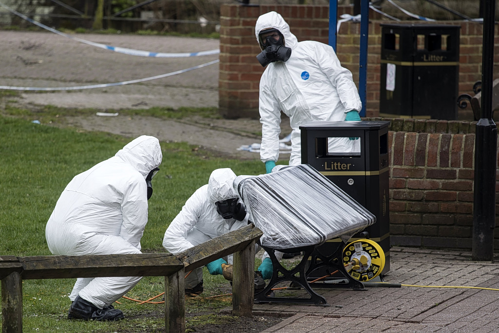 Οι βρετανικές αρχές εντόπισαν δύο Ρώσους που έκαναν χρήση των ονομάτων Ρουσλάν Μποσίροφ και Αλεξάντερ Πέτροφ ως υπόπτους. Θεωρήθηκαν μάλιστα ότι επρόκειτο στην πραγματικότητα για τον συνταγματάρχη της ρωσικής στρατιωτικής υπηρεσίας πληροφοριών GRU Ανατόλι Τσεπίγκα και τον Αλεξάντερ Μίσκιν της ίδιας υπηρεσίας. Σύμφωνα με μια από τις υποθέσεις, το Νόβιτσοκ είχε τοποθετηθεί σε προσωπικό αντικείμενο στη βαλίτσα της Γιούλια Σκριπάλ που ερχόταν από τη Μόσχα στο Λονδίνο.