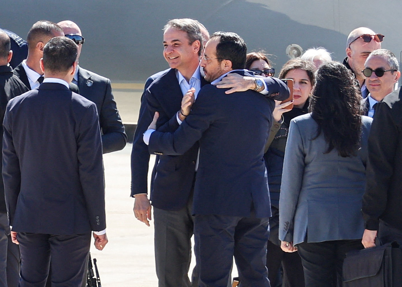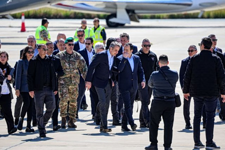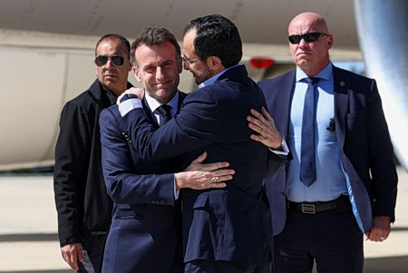Στην Κύπρο έφτασαν ο Κυριάκος Μητσοτάκης και ο Εμανουέλ Μακρόν για την συνάντηση με τον Νίκο Χριστοδουλίδη μετά τις ραγδαίες εξελίξεις στην Μέση Ανατολή και τις απειλές που δέχτηκε η μεγαλόνησος.