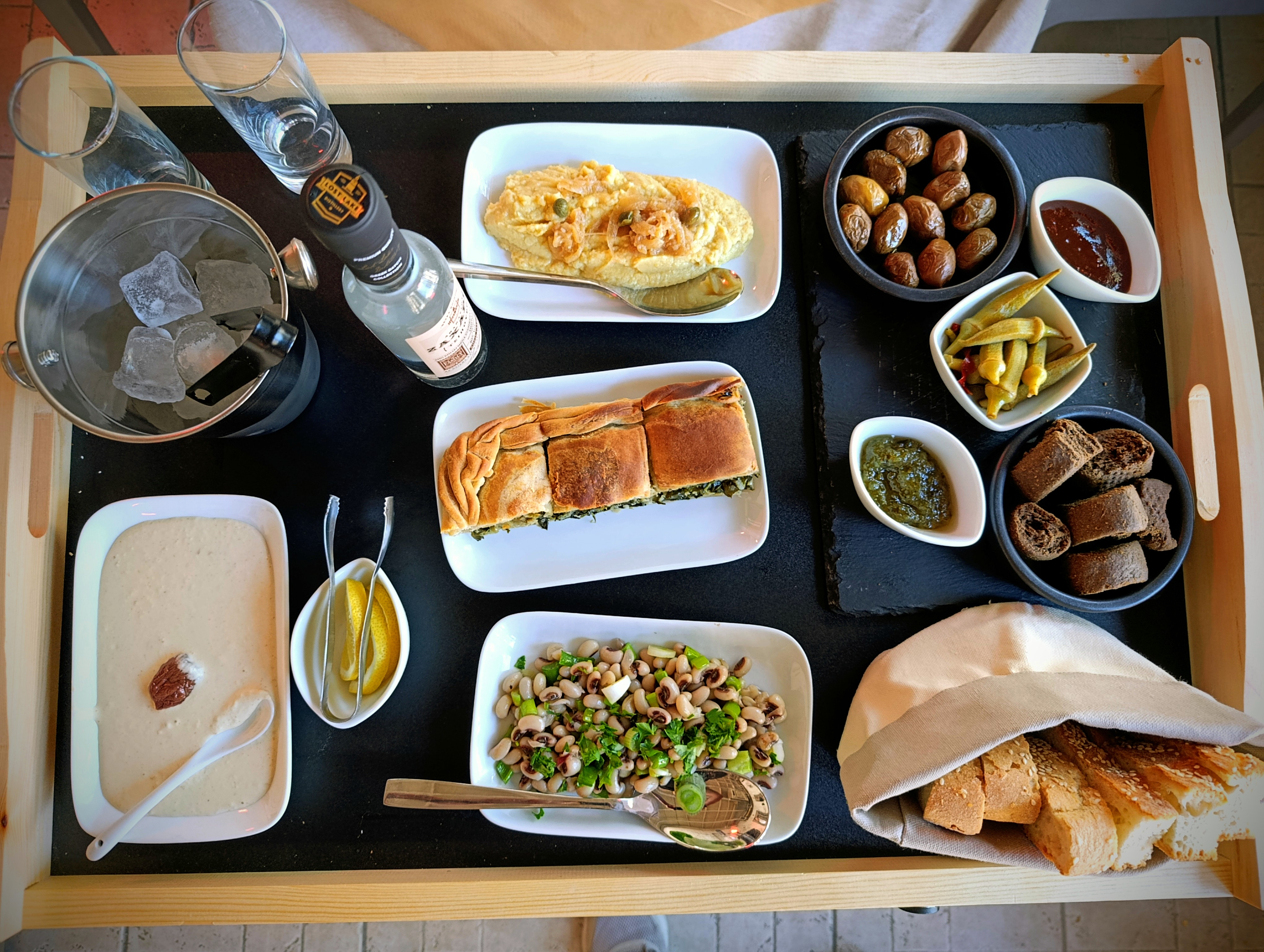 Στην πραγματικότητα, αυτό που έστησαν στις Τζιτζιφιές είναι μια μπακαλοταβέρνα στην πιο εξελιγμένη της μορφή. Σαν εκείνες τις παλιές, που έμπαινες μέσα και ο ιδιοκτήτης είχε ένα γκαζάκι, σου έφτιαχνε ένα αβγό ή δύο κεφτεδάκια, σου έκοβε ένα αγγουράκι και σου έβαζε έναν μεζέ για να πιεις το κρασί σου. Αυτό είναι η «ντελικατεσερία». «Δεν έχουμε πατάτα τηγανητή, μπριζόλα ή καλαμαράκια», προειδοποιεί ο Χάρης.