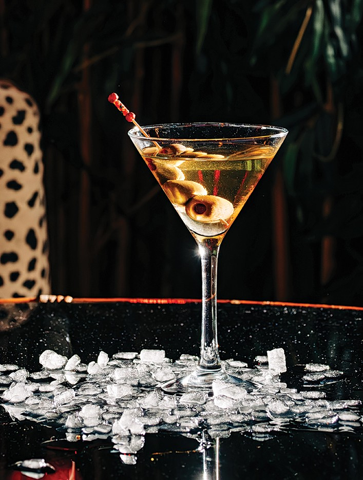 Ρίχνουμε όλα τα υλικά σε ένα ποτήρι ανάμειξης γεμάτο πάγο και αναδεύουμε μέχρι να έρθει το μείγμα σε θερμοκρασία -4oC. Σερβίρουμε σε παγωμένο ποτήρι για κοκτέιλ γαρνίροντας με μία ελιά.