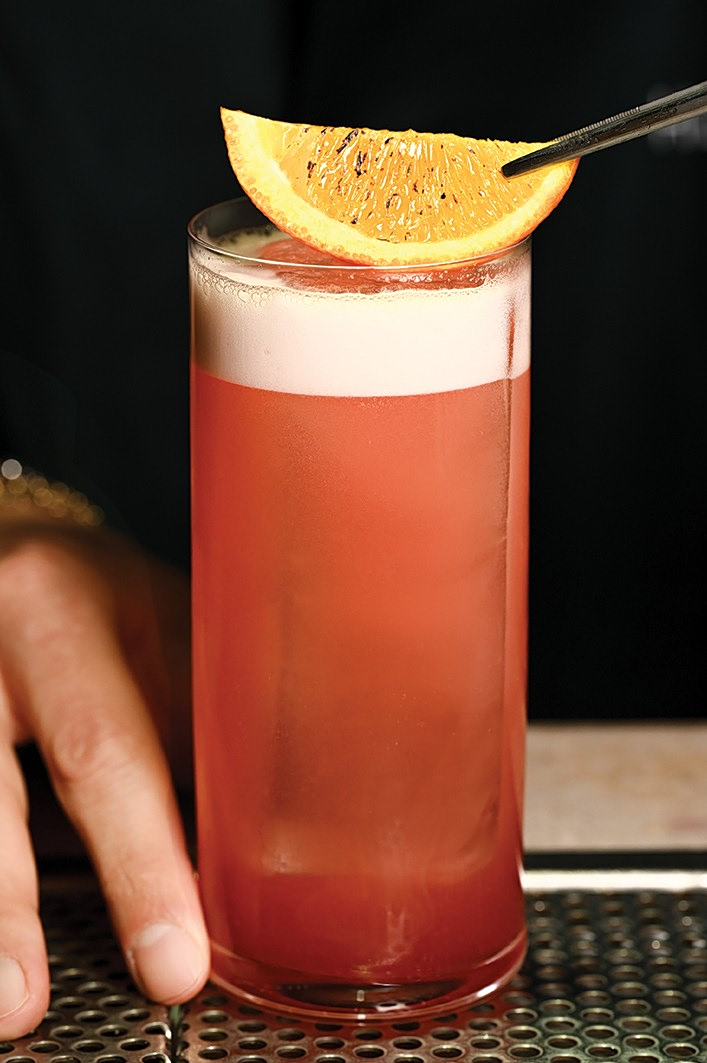 Τα εσπεριδοειδή πρωταγωνιστούν και σε τούτο το συνδυασμό ενός πιο “γεμάτου” και πικάντικου κοκτέιλ με την τολμηρή γευστικά και αρωματικά ωμή παλαμίδα.