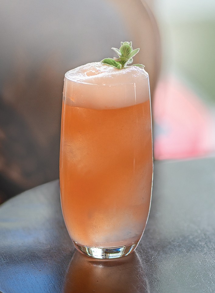 Τα εσπεριδοειδή πρωταγωνιστούν και σε τούτο το συνδυασμό ενός πιο “γεμάτου” και πικάντικου κοκτέιλ με την τολμηρή γευστικά και αρωματικά ωμή παλαμίδα.