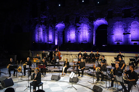 Στιγμιότυπο από τη συναυλία της 13ης Σεπτεμβρίου 2024 στο Ηρώδειο, όπου παρουσιάστηκε ξανά το «Ρεμπέτικο» 40+1 χρόνια μετά την πρώτη κυκλοφορία του έργου.