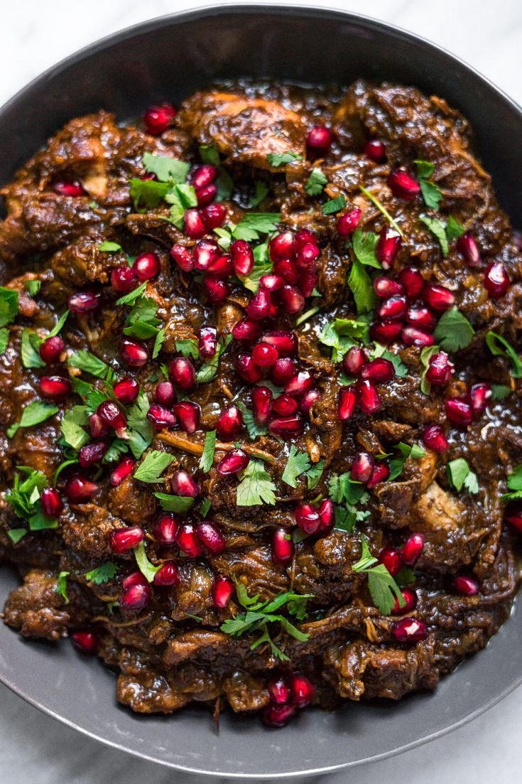 Στο λεγόμενο βασιλικό στιφάδο της περσικής κουζίνας, το καρύδι —ένα «θερμό» συστατικό— συναντά την πάστα ροδιού —ένα «ψυχρό» στοιχείο— δημιουργώντας ένα βαθύ, βελούδινο και γλυκόξινο πιάτο που θεωρείται υπόδειγμα γαστρονομικής ισορροπίας.
