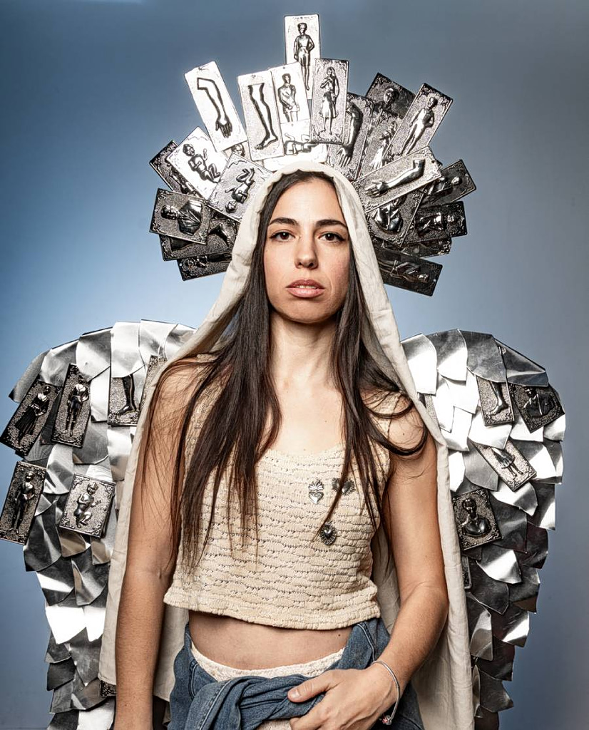 Μια νέα γυναίκα ταξιδεύει στην Τήνο, κρατώντας ένα χρυσό μωρό για προσφορά.