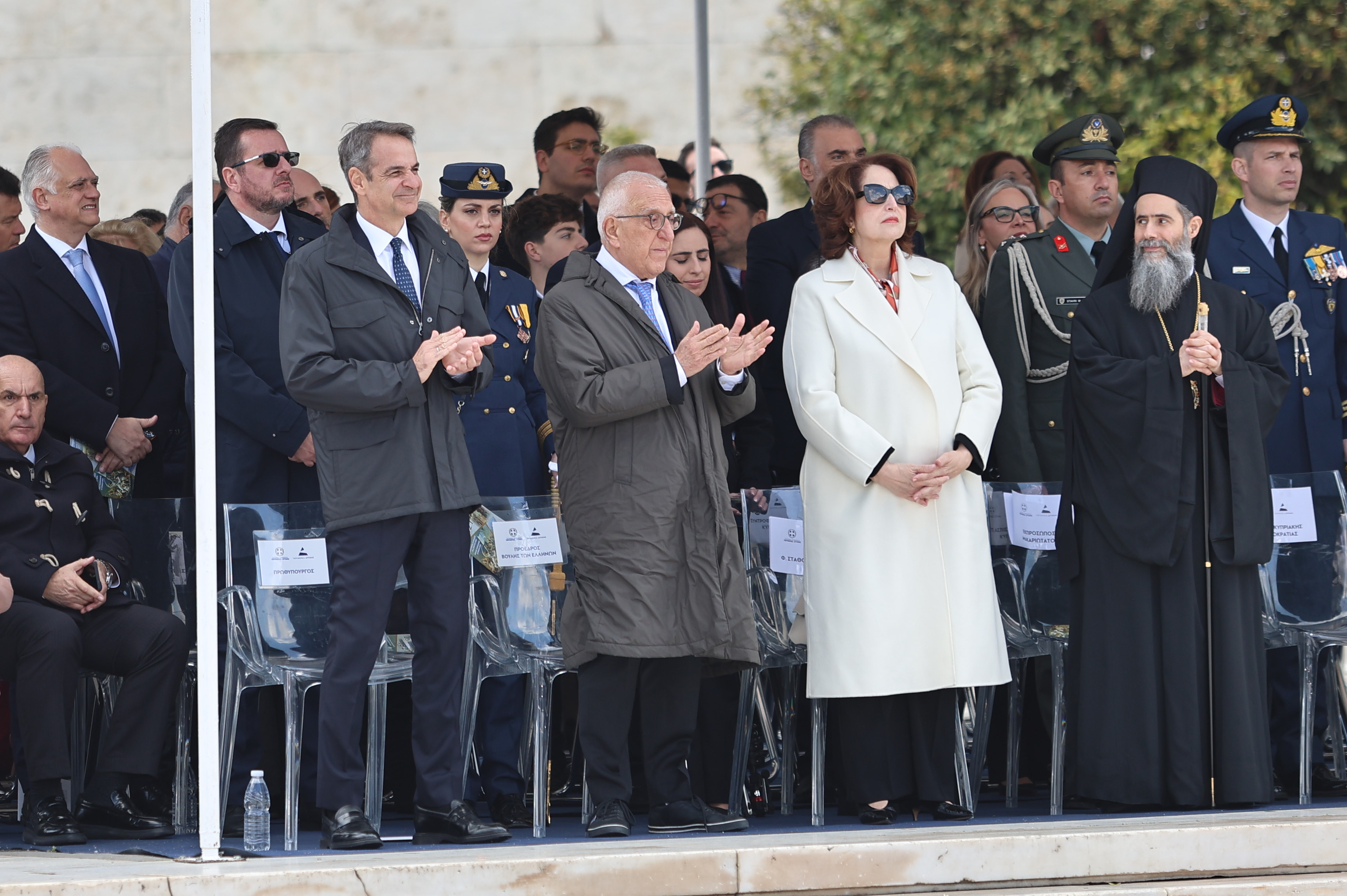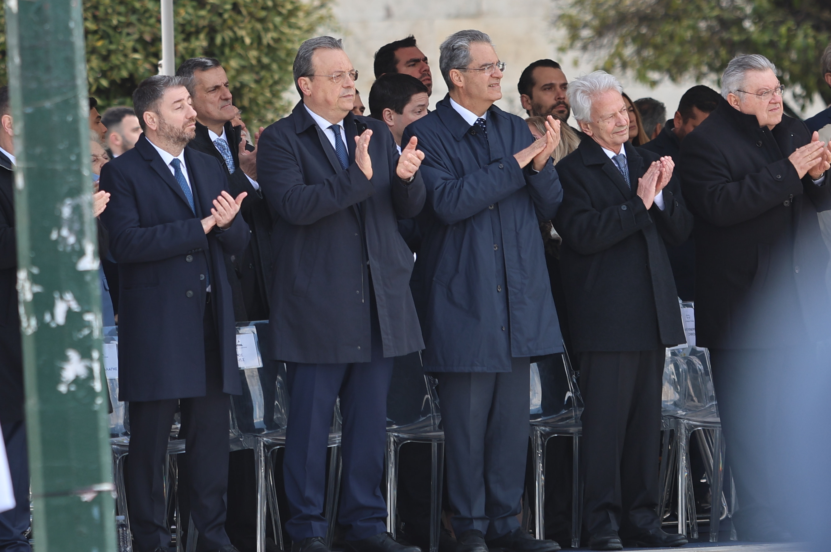 Οι εκπρόσωποι της πολιτικής ηγεσίας παρακολουθούν την παρέλαση