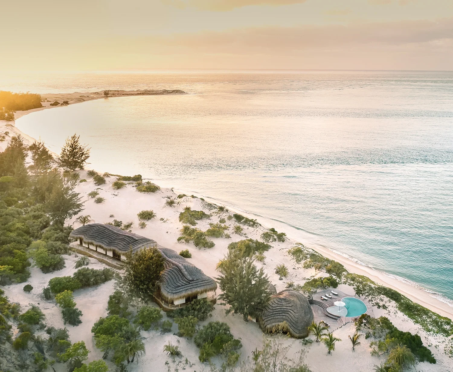 Το Kisawa σχεδιάστηκε και υλοποιήθηκε σε συνεργασία με το αρχιτεκτονικό γραφείο NJF Design, του οποίου ηγείται – μαντέψτε – η ίδια η Νίνα Φλορ. Η προσέγγισή της είναι μια καθαρόαιμη σπουδή στη «barefoot luxury» (ξυπόλητη πολυτέλεια).