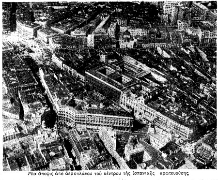 »Αντιθέτως μεγάλαι είνε αι ζημίαι αι προξενηθείσαι εις το τμήμα της πόλεως το ευρισκόμενον προς τα έξω της οχυράς ζώνης από τας πλευράς, όπου ήσαν αι εθνικιστικαί γραμμαί. Δια πρώτην φοράν από πολλού καιρού οι κάτοικοι της Μαδρίτης απετόλμησαν να κυκλοφορήσουν εις τας καταστραφείσας, ένεκα του πολέμου, συνοικίας, όπου ως διεπιστώθη, ολόκληρα οικοδομικά τετράγωνα έχουν κρημνισθή».