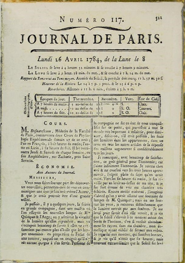 «Αν οι Γάλλοι ξυπνούσαν με την ανατολή», έγραφε ειρωνικά, «θα εξοικονομούσαν 64 εκατομμύρια λίβρες κεριού τον χρόνο».