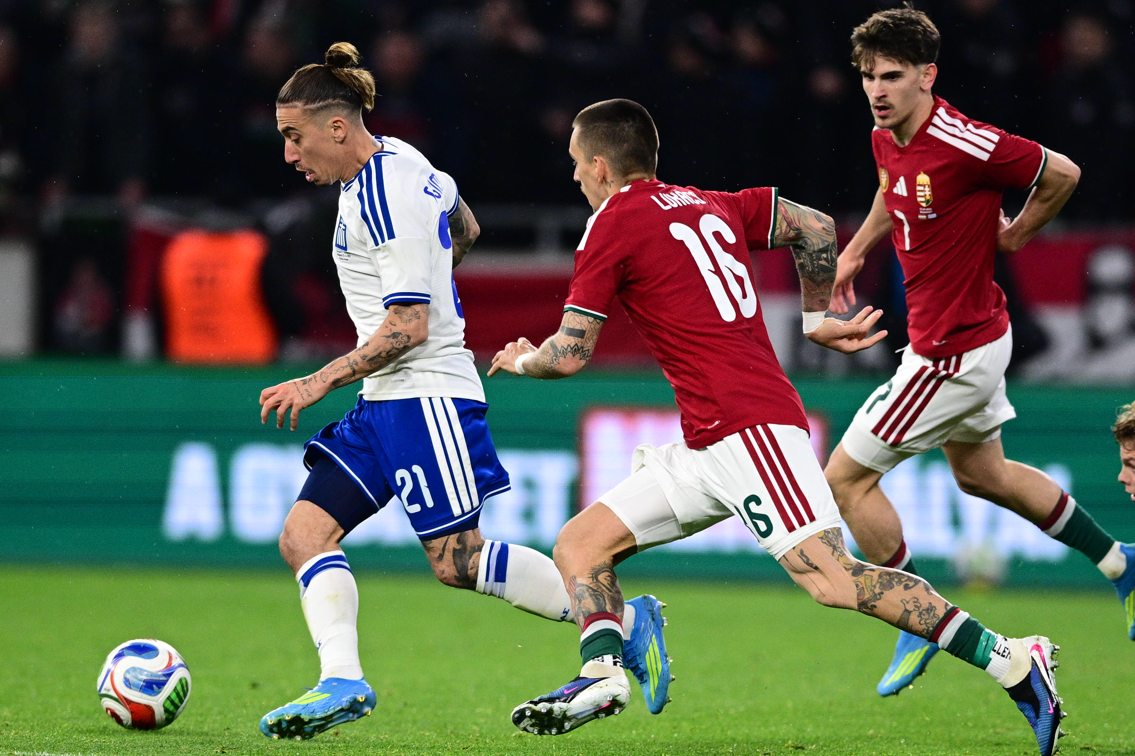Η αναμέτρηση ξεκίνησε με καλό ρυθμό και τις δύο ομάδες να δημιουργούν φάσεις από τα πρώτα λεπτά. Στο 7’, οι Ούγγροι απείλησαν με συνδυασμό μέσα στην περιοχή, όμως ο Τζολάκης αντέδρασε εντυπωσιακά στο κοντινό σουτ του Σάλαϊ, κρατώντας το μηδέν.