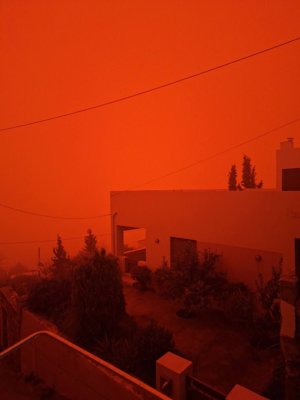 Απόκοσμες είναι οι εικόνες που έρχονται από την Κρήτη, όπου η αφρικανική σκόνη έχει καλύψει σχεδόν τα πάντα δίνοντας στον ουρανό ένα βαθύ πορτοκαλί χρώμα.