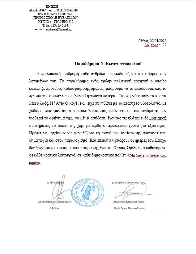 Η κίνηση αυτή αναμένεται να πυροδοτήσει νέο γύρο αντιπαράθεσης, καθώς η Ένωση Δικαστών και Εισαγγελέων επιλέγει πλέον να απαντά σε υψηλούς τόνους στις επικρίσεις που δέχεται το δικαστικό σώμα για τον χειρισμό μεγάλων υποθέσεων.