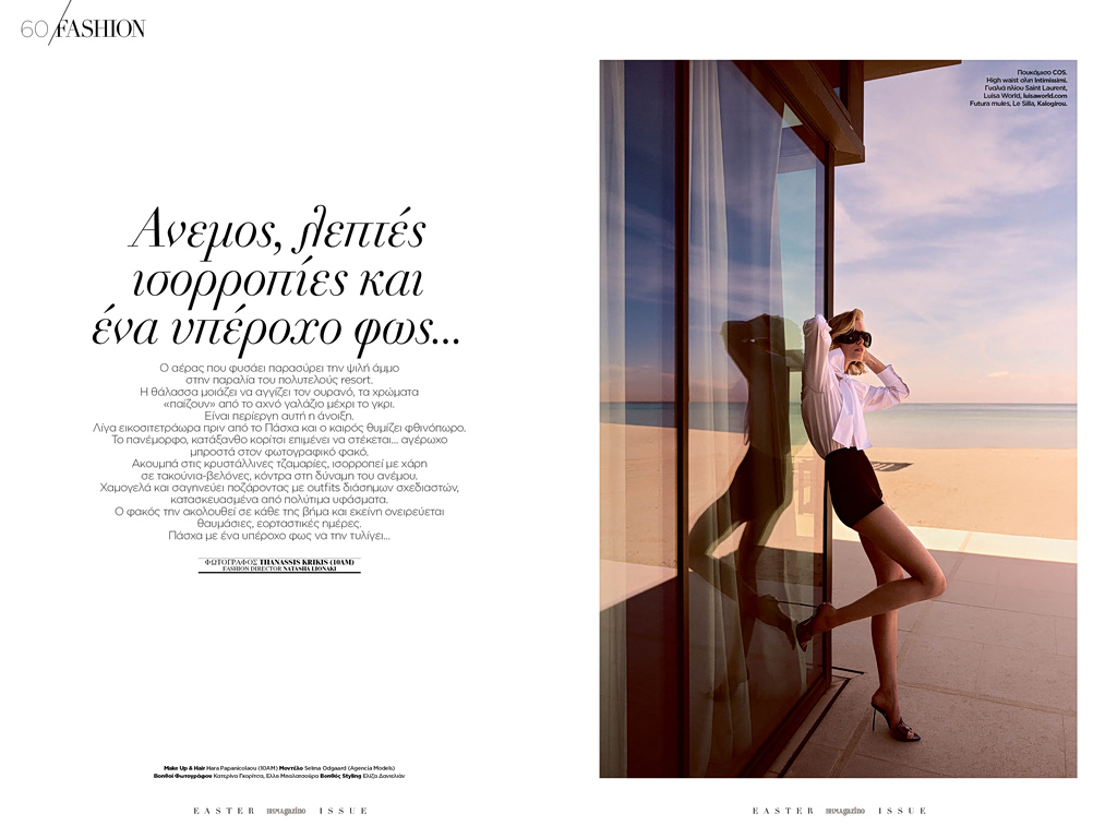 Και όπως κάθε Πάσχα, η αισθητική κορυφώνεται μέσα από ένα ατμοσφαιρικό fashion story: άνεμος, φως και λεπτές ισορροπίες συνθέτουν ένα σκηνικό σχεδόν ονειρικό, όπου η μόδα συναντά την ποίηση της στιγμής.