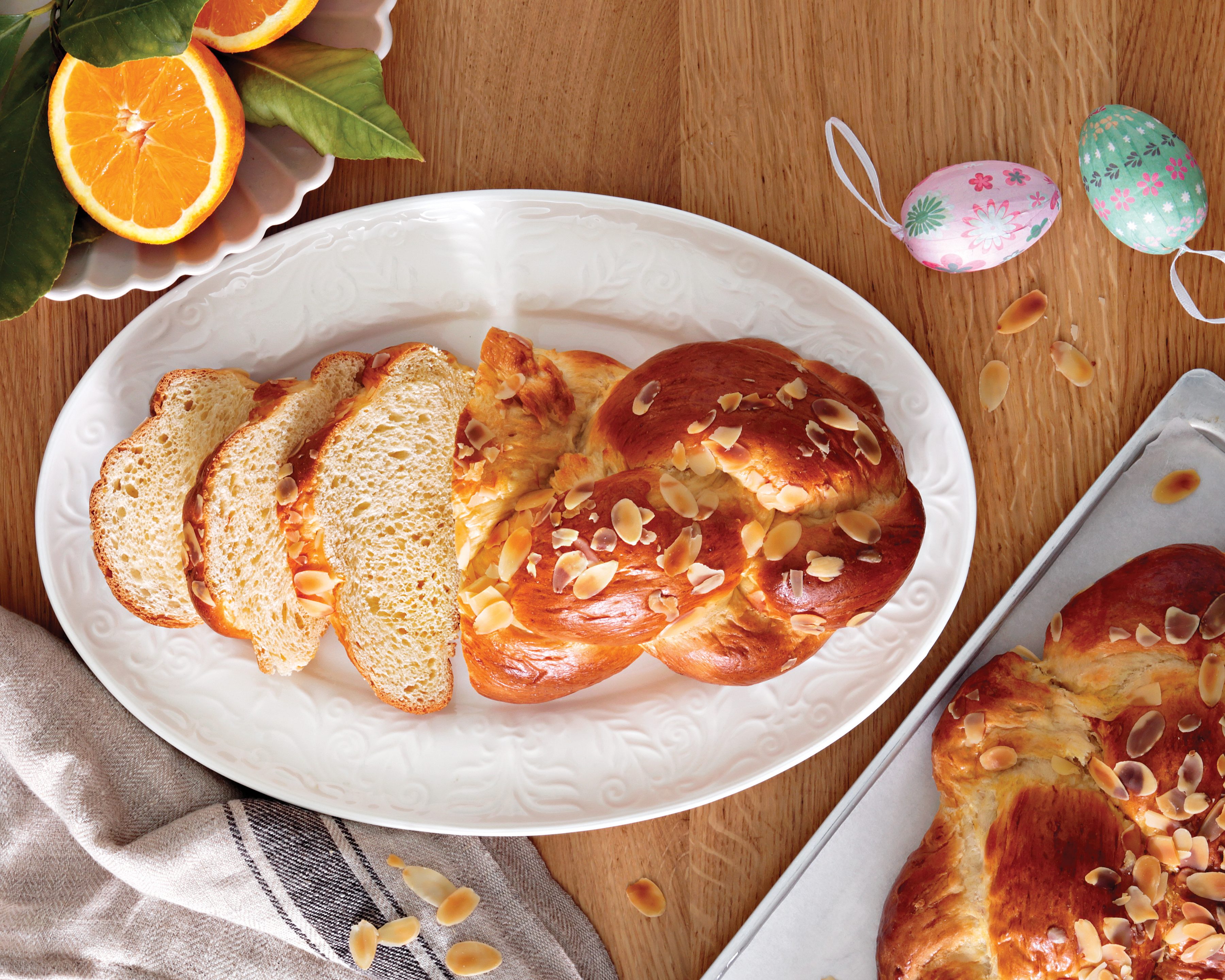 Aν και το τρώμε όλο το χρόνο, το περιμένουμε πώς και πώς γιατί κανείς δεν μπορεί να αντισταθεί στην υπέροχη μαστιχωτή υφή και στο άρωμά του. Το τσουρέκι, ένα από τα δώρα των νονών στα βαφτιστήρια, είναι αγαπημένο σε μικρούς και μεγάλους. Όταν δεν το απολαμβάνουμε σκέτο ή βουτώντας το σε ζεστό γάλα, μας αρέσει να το συνδυάζουμε  με διάφορους τρόπους και να μην το αποχωριζόμαστε όλες τις ώρες της ημέρας. Για το πρωινό, είναι τέλειο με φρέσκες μαρμελάδες από εποχικά φρούτα ή με γενναίες δόσεις από θυμαρίσιο μέλι. Εννοείται ότι το ίδιο καλά ταιριάζει με την πραλίνα φουντουκιού αλλά και με τα βούτυρα καρπών, ειδικά όταν συνοδεύεται από φρέσκα φρούτα.