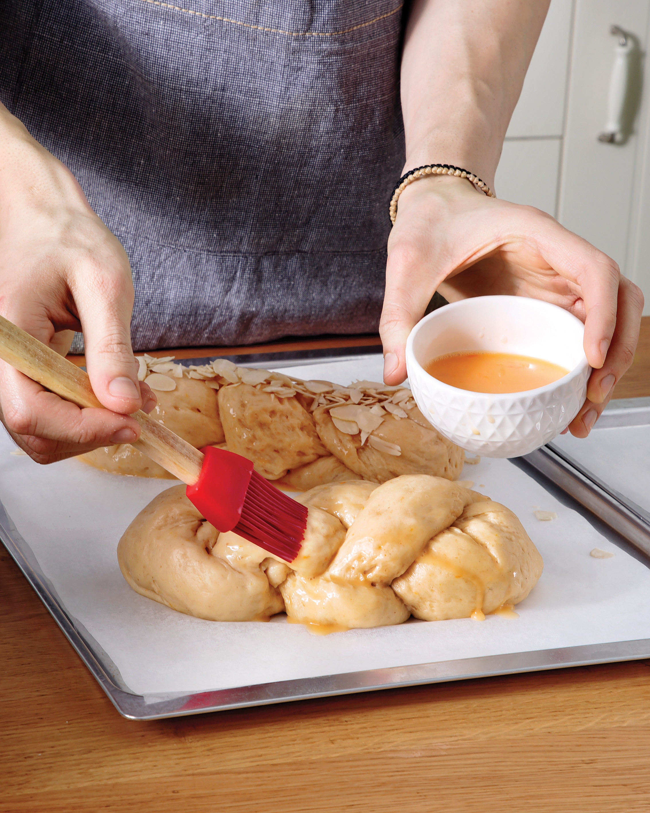 Με αυτό κατά νου και έχοντας αφιερώσει πολλές ώρες σε ζυμώματα και δοκιμές, ο Γιάννος Βαλιάνος έχει καταλήξει στις 3 συνταγές που δεν απογοητεύουν ποτέ: μία για κλασικό τσουρέκι με μαστίχα, μαχλέπι και πορτοκάλι, μία για σιροπιαστό με σοκολάτα και μία vegan εκδοχή για να το απολαύσουν ακόμη κι όσοι απέχουν από τα ζωικά λιπαρά. Πέρα, όμως, από τις συνταγές, ο ίδιος μάς καθοδηγεί βήμα-βήμα -καθότι για το σωστό τσουρέκι θέλει και το κατάλληλο ζύμωμα- ώστε η επιτυχία μας να είναι εξασφαλισμένη. Ακόμη και οι πρωτάρηδες, δοκιμάστε το! Κι είναι βέβαιο πως όποια εκδοχή κι αν διαλέξετε, το αποτέλεσμα θα σας δικαιώσει.