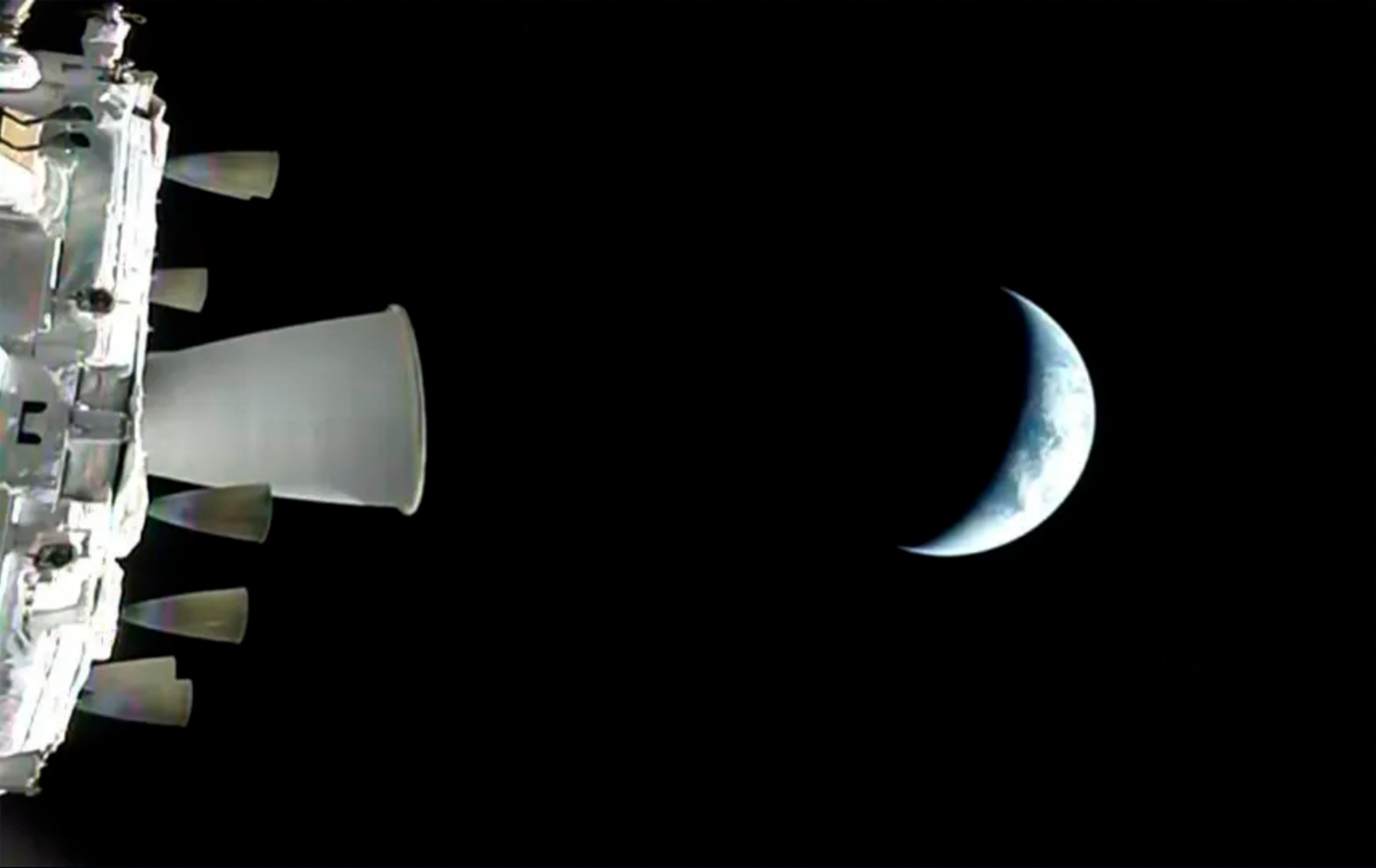 Με την περίπου εξάλεπτη λειτουργία του κινητήρα της μονάδας υπηρεσίας του διαστημοπλοίου την Πέμπτη, το Orion και το πλήρωμά του, αποτελούμενο από τους αστροναύτες της NASA Reid Wiseman, Victor Glover, Christina Koch και τον αστροναύτη της CSA (Canadian Space Agency) Jeremy Hansen, επιτάχυναν ώστε να «ξεφύγουν» από την τροχιά της Γης και να ξεκινήσουν την πορεία τους προς τον πλησιέστερο «γείτονά» της.