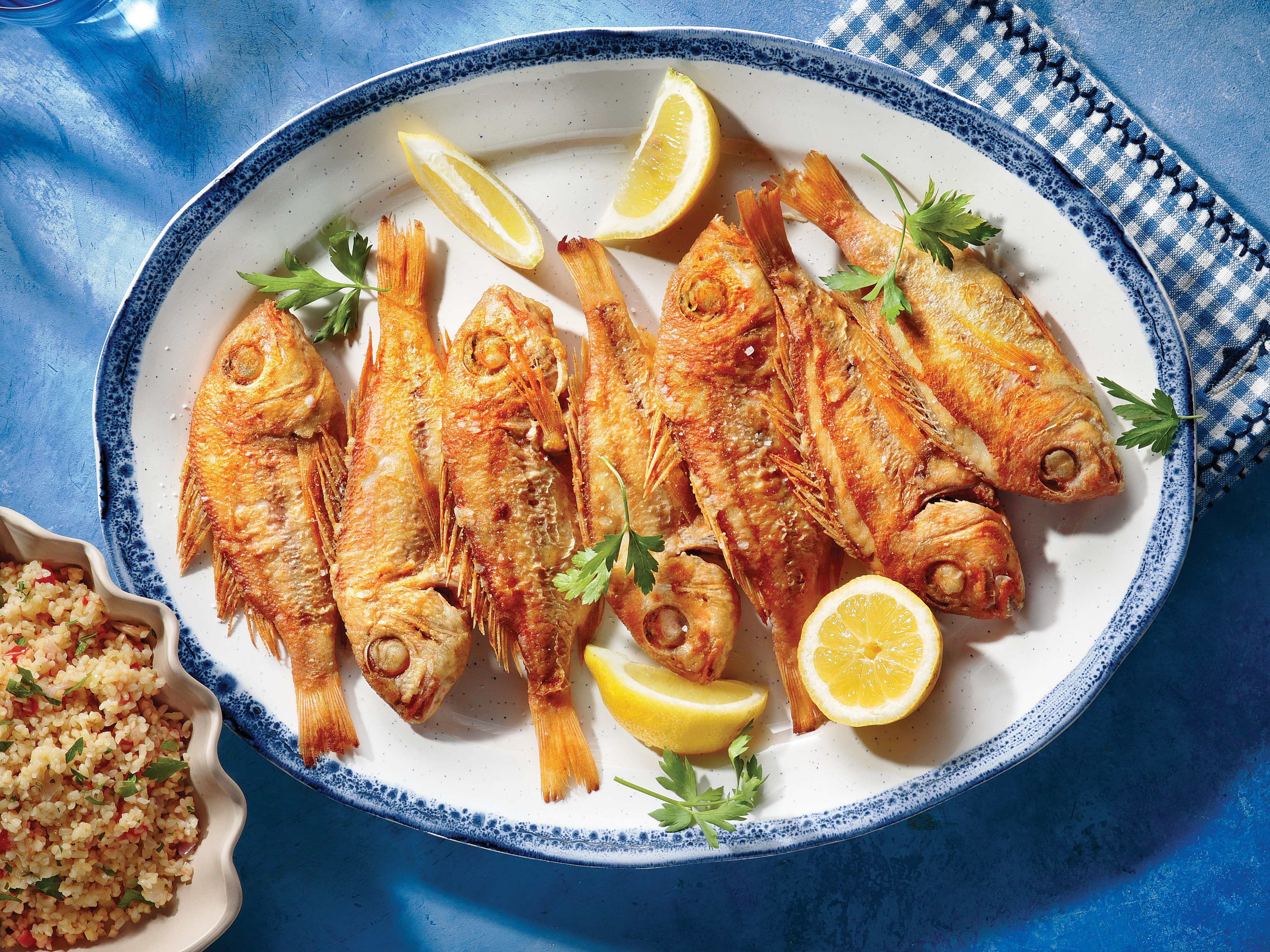• 4 φρέσκα ψάρια (μπακαλιάρο ή κέφαλο)