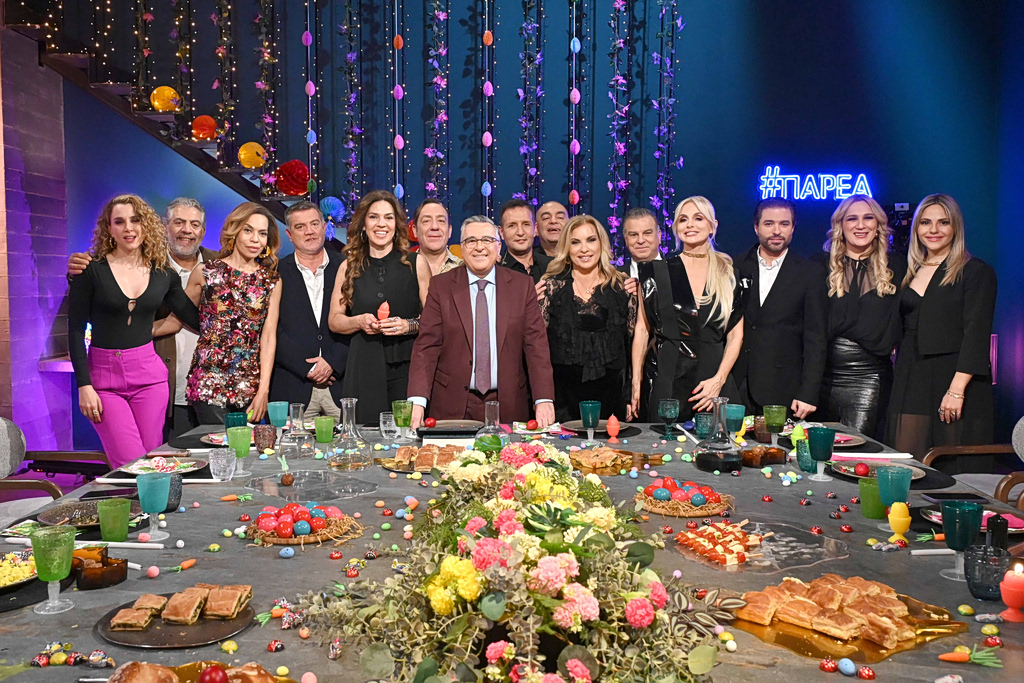 Το Μ. Σάββατο η «Παρέα» (23.00) του Γιώργου Κουβαρά προσκαλεί το κοινό σε μια ξεχωριστή βραδιά, όπου η κατάνυξη της Ανάστασης δίνει τη θέση της σε μια μεγάλη γιορτή γεμάτη φως, συγκίνηση και χαρά. Τον τόνο της βραδιάς δίνει ο Δημήτρης Μπάσης μαζί με τους Βίκυ Καρατζόγλου, Άγγελο Ανδριανό και Ελένη Φουντά. Στο τραπέζι της εκπομπής θα καθίσουν οι Ναταλία Δραγούμη, Σωτήρης Καλυβάτσης, Κούλλης Νικολάου, Νίκη Σερέτη, Ορέστης Τζιόβας και Παναγιώτα Βιτετζάκη και οι δημοσιογράφοι Νικόλας Βαφειάδης, Ζωή Κρονάκη, Παύλος Παπαδημητρίους, Μαίρη Αυγερινοπούλου και Κωνσταντίνος Τσολάκης.