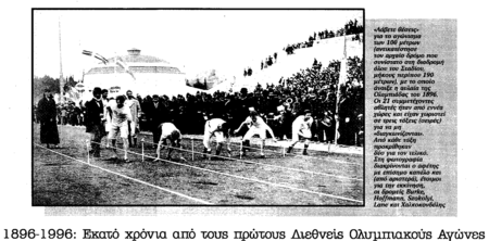 «ΤΟ ΒΗΜΑ» της 17ης Μαρτίου 1996, με αφορμή τα 100 χρόνια από την πρώτη διοργάνωση, δημοσιεύει ένα εκτενές ρεπορτάζ των: Χριστίνας Κουλούρη, Θ. Καλπαξή, Γ. Κόκκινου και Ελένης Φουρναράκη: