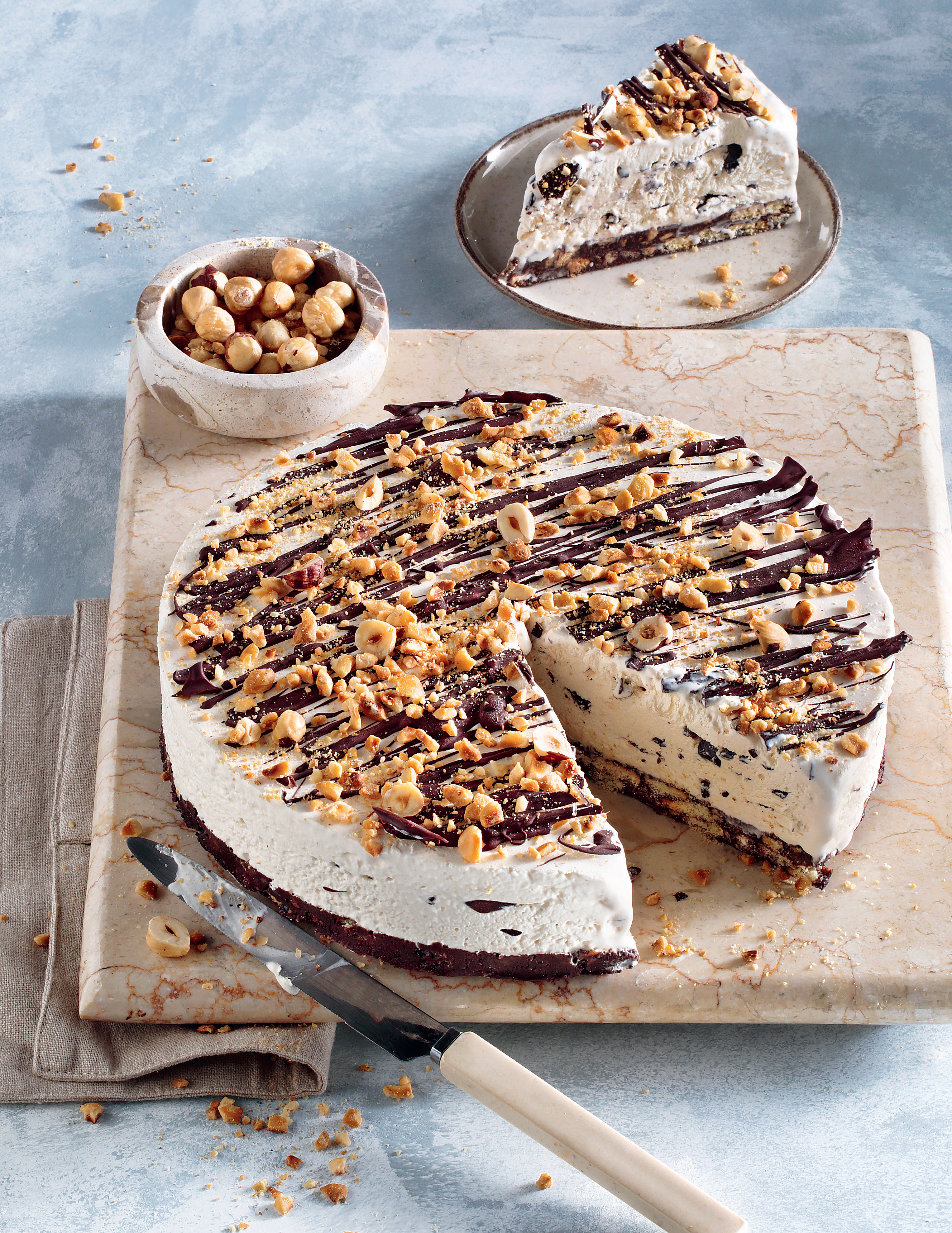 Η συνέχεια είναι εξίσου απολαυστική, με δημιουργίες όπως semifreddo με μαρέγκες και καραμελωμένα αμύγδαλα, γιαουρτοζελέ λάιμ-καρύδα με φιστίκι Αιγίνης, brownies με κρέμα μόκα και γλυκά ψυγείου με τριπλή σοκολάτα ή μπανάνα. Προτάσεις που συνδυάζουν ευκολία και εντυπωσιακό αποτέλεσμα για κάθε περίσταση.