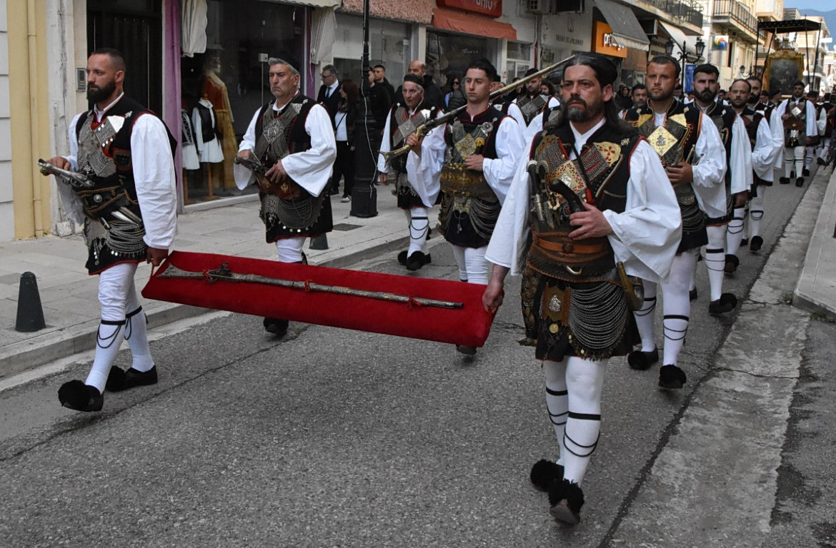 Το απόγευμα του Σαββάτου, η πομπή ξεκίνησε από τον Ιερό Μητροπολιτικό Ναό Αγίου Σπυρίδωνος και κατευθύνθηκε προς τον Κήπο των Ηρώων, διανύοντας τα 950 μέτρα της διαδρομής με πλήθος κόσμου να παρακολουθεί με δέος και συγκίνηση. Στο τέλος της πομπής ακολουθούσε σε σεβαστική σιωπή η Εικόνα της Εξόδου, ενώ οι επίσημοι εισήλθαν στον Κήπο των Ηρώων για να ξεκινήσει το τελετουργικό μέρος, δίνοντας μια αίσθηση βαθιάς τιμής, μνήμης και υπερηφάνειας για την κορυφαία στιγμή της Ελληνικής Ιστορίας.