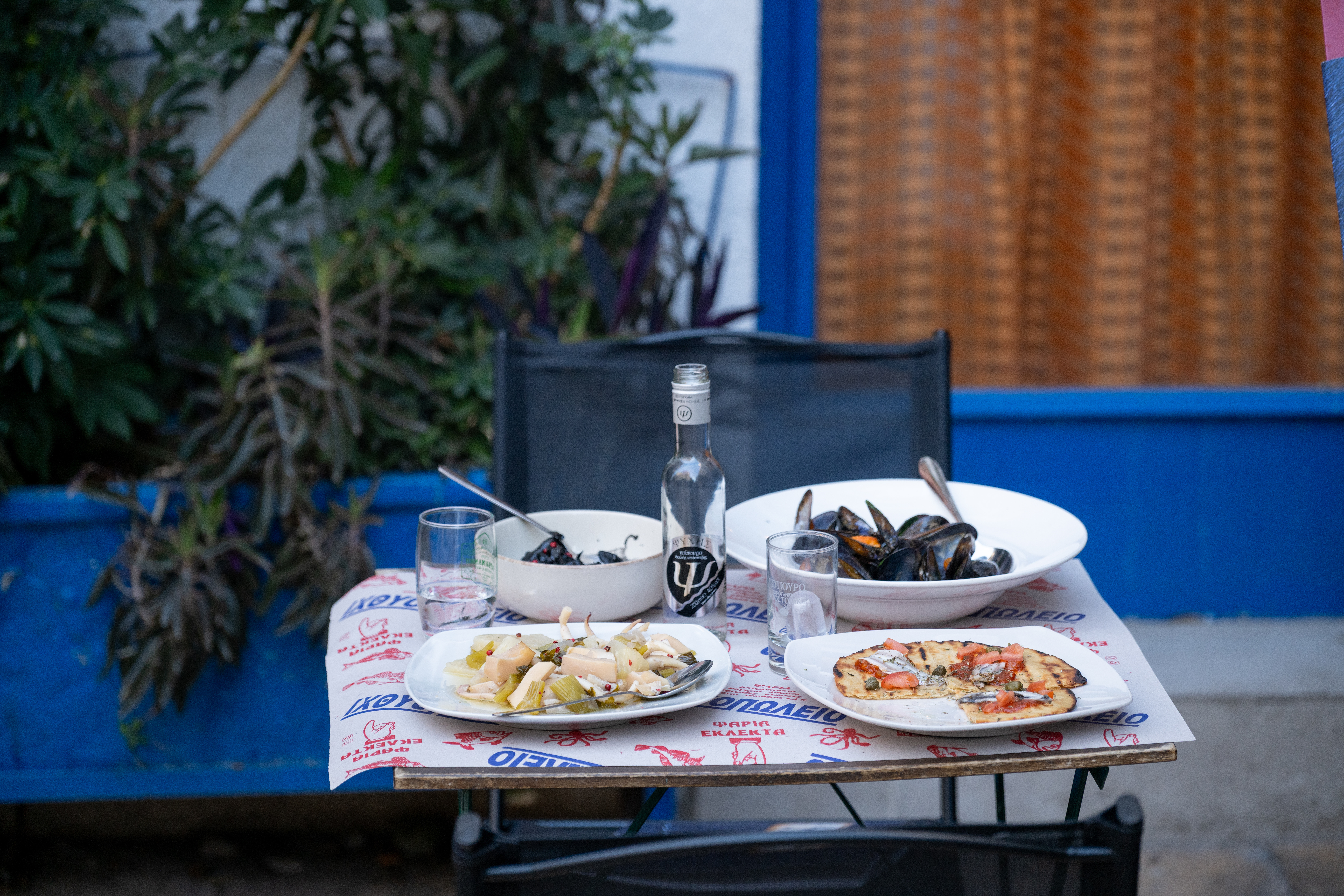 Τρελαίνομαι για την φακοσαλάτα αλλά και την πατατοσαλάτα με τον μαριναρισμένο γαύρο, παραγγέλνω με συνέπεια φάβα και μελιντζανοσάλατα και δεν χάνω με τίποτα τις γαρίδες σαγανάκι γιατί αγαπώ πολύ τις βούτες με ψωμάκι. Αλήθεια, αυτό το μαγαζί στην σκληροπυρηνική πλευρά της Αθήνας, με κάνει να νιώθω ότι είμαι διακοπές σε νησί και περιμένω τη θάλασσα να στρίψει από την Αριστοτέλους και να μου χαϊδέψει τη γάμπα.