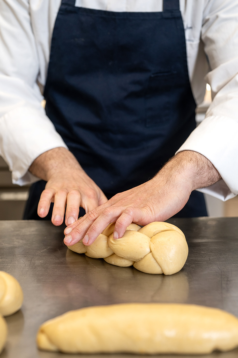Γιατί το τσουρέκι του, προτού καν γίνει συνταγή, ήταν ζωντανή εικόνα μέσα του. «Θυμάμαι στην Αστυπάλαια, στο φούρνο του θείου μου, να παίρνω ένα μπουκάλι γάλα και ένα τσουρέκι για να το βουτάω μέσα. Δεν είναι απλώς μια παιδική ανάμνηση. Είναι κάτι που το έχω χαραγμένο μέσα μου: η ζύμη που ανοίγει σε ίνες, η γεύση που γίνεται πιο απαλή μέσα στο γάλα, το άρωμα που μένει. Αυτό το “δάγκωμα” κουβαλώ μέχρι σήμερα και αυτό προσπαθώ κάθε φορά να πετύχω στο τσουρέκι μου».