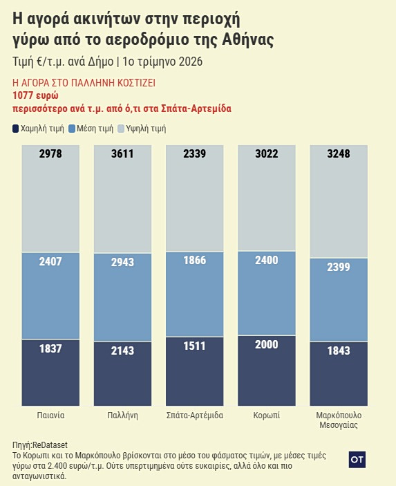 Σύμφωνα με τα στοιχεία που συγκέντρωσε η Redataset η περιοχή γύρω από το αεροδρόμιο δεν αποτελεί ένα ενιαίο επενδυτικό οικοσύστημα. Αντιθέτως, παρουσιάζει έναν δομικό διαχωρισμό, με την Παλλήνη και τα Σπάτα να αποτελούν τους δύο αντίθετους πόλους σε ένα ιδιότυπο τιμολογιακό φάσμα. Το πλέον εντυπωσιακό εύρημα αφορά την παραδοξότητα της εγγύτητας.