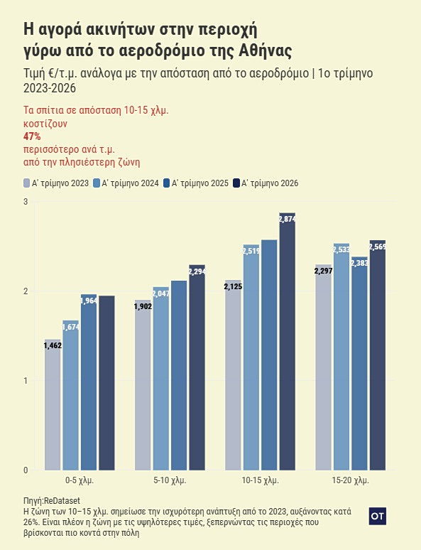 Η ζώνη που βρίσκεται γεωγραφικά πιο κοντά στις εγκαταστάσεις του αεροδρομίου παραμένει, περιέργως, η φθηνότερη ολόκληρης της περιοχής.