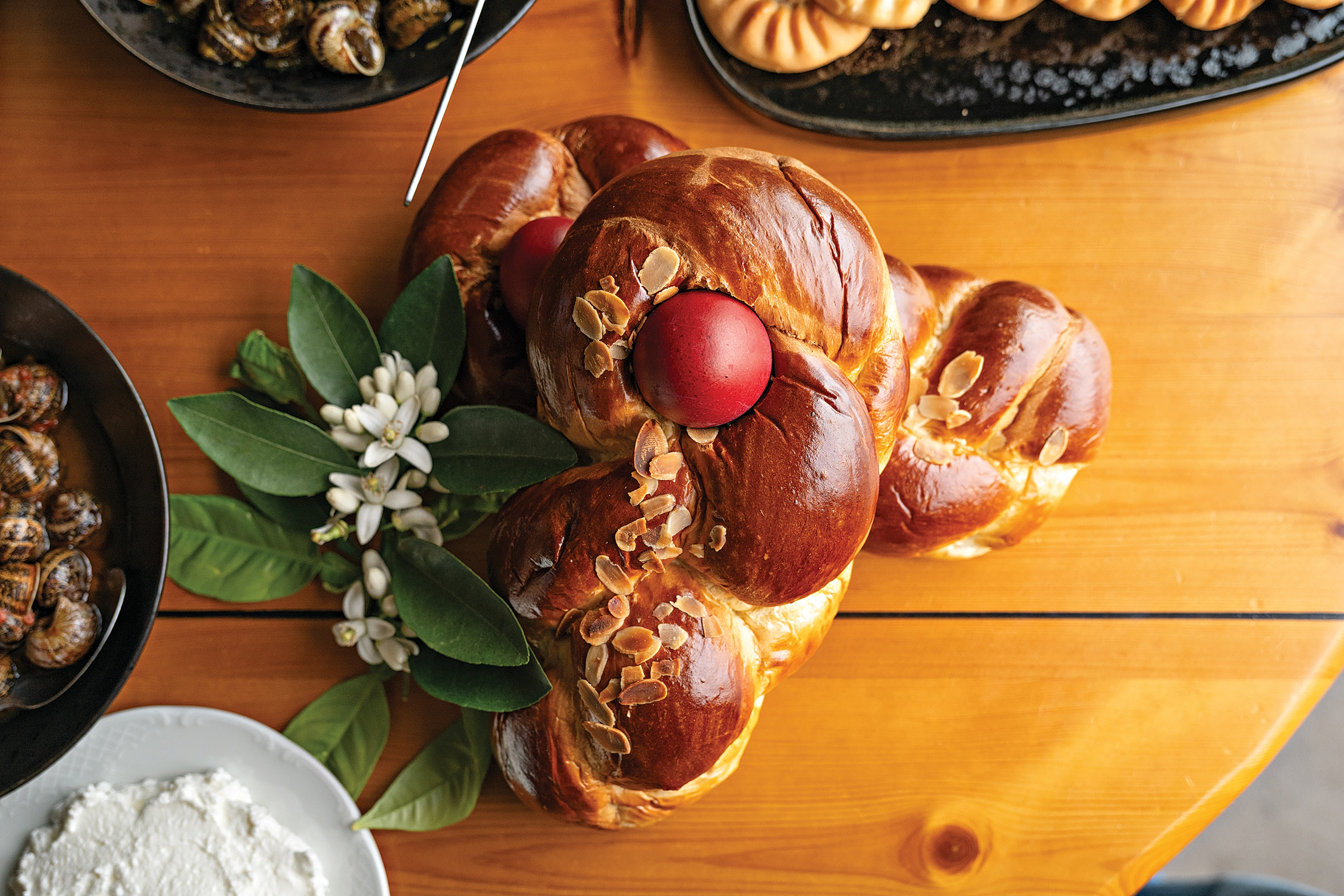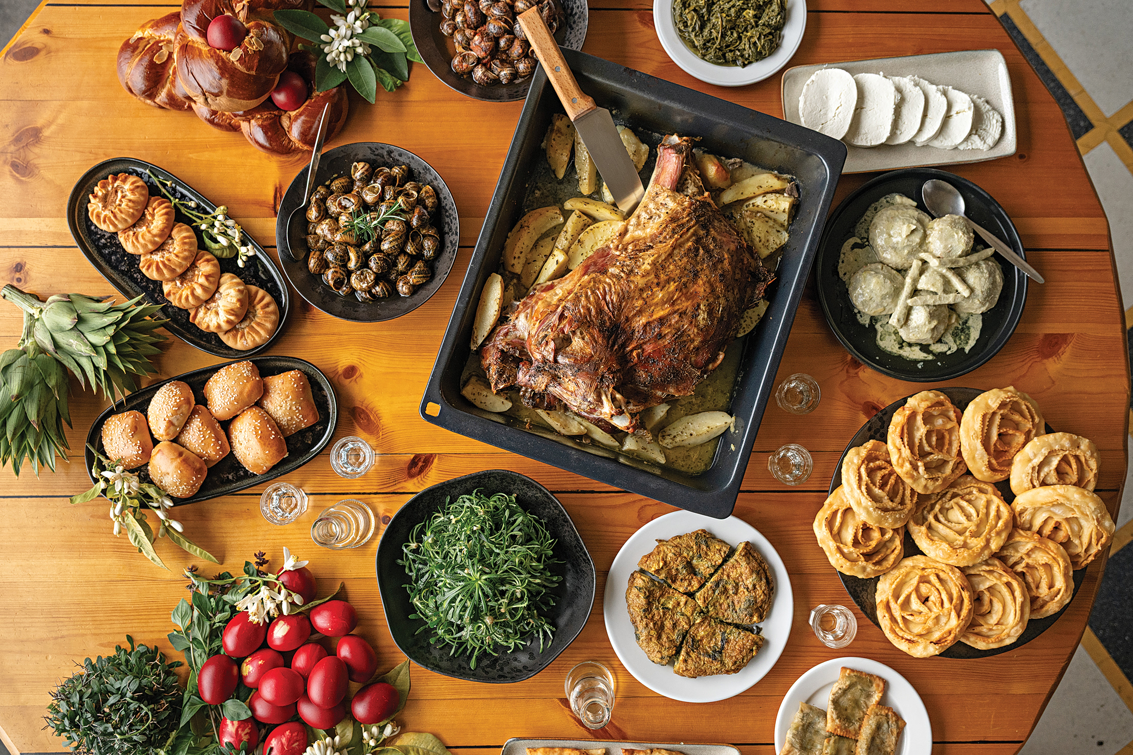 Στο τραπέζι υπάρχουν ακόμα τα γαλατερά ψωμάκια, που μοιάζουν με τσουρέκια, αλλά έχουν πιο ελαφριά γεύση και ταιριάζουν υπέροχα με γραβιέρα και μέλι, τα φρέσκα λαχανικά, οι καρδιές από τις αγκινάρες, τα βραστά χόρτα, οι κοχλιοί. Μόνο αν το ζήσεις, θα το καταλάβεις.