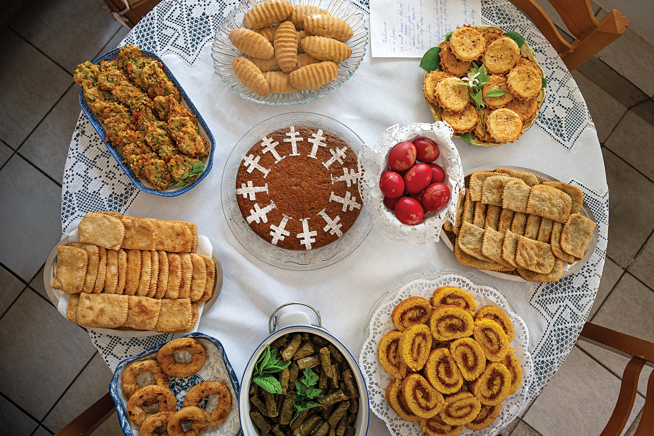 Το Πάσχα στο νησί έχει μια διαδρομή όλο νόημα και ουσία και το καταλαβαίνεις από πολύ νωρίς. Σαν το πρώτο ελαφρύ ανοιξιάτικο αεράκι, σαν μια αδιόρατη αλλαγή στο φως που πέφτει πάνω στις ασβεστωμένες αυλές, στις πέτρινες μάντρες, στα χόρτα που ήδη έχουν θεριεύσει αποχαιρετώντας το χειμώνα. Η Κρήτη καθώς πλησιάζει η Μεγάλη Εβδομάδα ζει την αναγέννηση της γης με έναν ολοκληρωτικό τρόπο, παρασύρεται από αυτήν, ενώνεται μαζί της. Όλα και όλοι δουλεύουν για να είναι μια γιορτή ξεχωριστή που θα ξυπνήσει μνήμες και θα αναβιώσει έθιμα και παραδόσεις. Κάθε σπίτι έχει το τελετουργικό του: οι κήποι φροντίζονται, τα σπίτια προετοιμάζονται, οι αυλές στολίζονται. Το νησί μοιάζει να φοράει τα καλά του. Και εκεί όπου περισσότερο ζει η ψυχή του είναι στις κουζίνες. Γιατί κάθε γαστρονομικό έθιμο έχει τη σημασία του και υπάρχει λόγος που έχει διασωθεί μέχρι τις ημέρες μας.