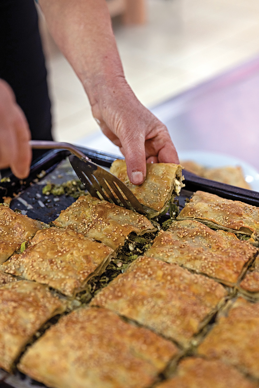 Στον Κάντανο οι κυρίες του Πολιτιστικού Συλλόγου Γυναικών, Κατίνα Σταυρουλάκη και Κωστούλα Καρυωτάκη, έφτιαξαν για εμάς καλιτσούνια, χορτόπιτα και μια υπέροχη κρεατότουρτα. Φωτό: Αλέξανδρος Αλεξανδρής