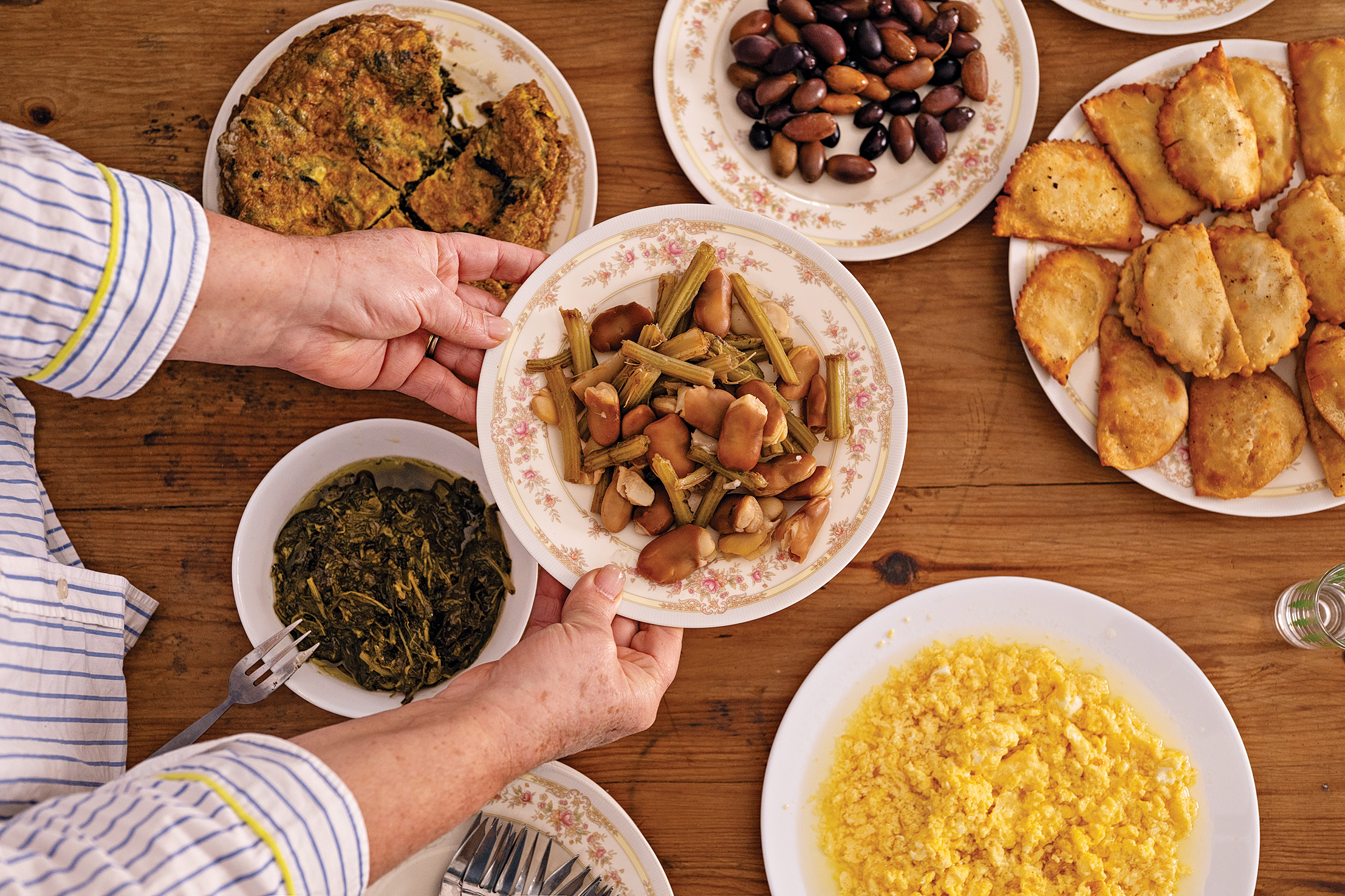 Το σταμναγκάθι, οι ασκολύμπροι, τα ραδίκια, τα μυρώνια, οι καυκαλήθρες, οι καλίτσες, οι τζόχοι, οι ψικοσιρίδες, οι χοιρομουρίδες, οι ραπανίδες, οι βρούβες, τα παπούλια… Πόσα και πόσα χόρτα δεν έχει αυτός ο τόπος. Πολλά από αυτά πικρά, όλα βαθιά νόστιμα και μοναδικά, βράζονται, γίνονται πίτες, μπαίνουν σε σφουγγάτα –τις κρητικές ομελέτες–, συνοδεύουν όσπρια και χοχλιούς. Η μαγειρική της Κρήτης δεν αφήνει τίποτα να πάει χαμένο, μια κουζίνα σοφή και θεραπευτική που στηρίζει το σώμα και φροντίζει για την υγεία.