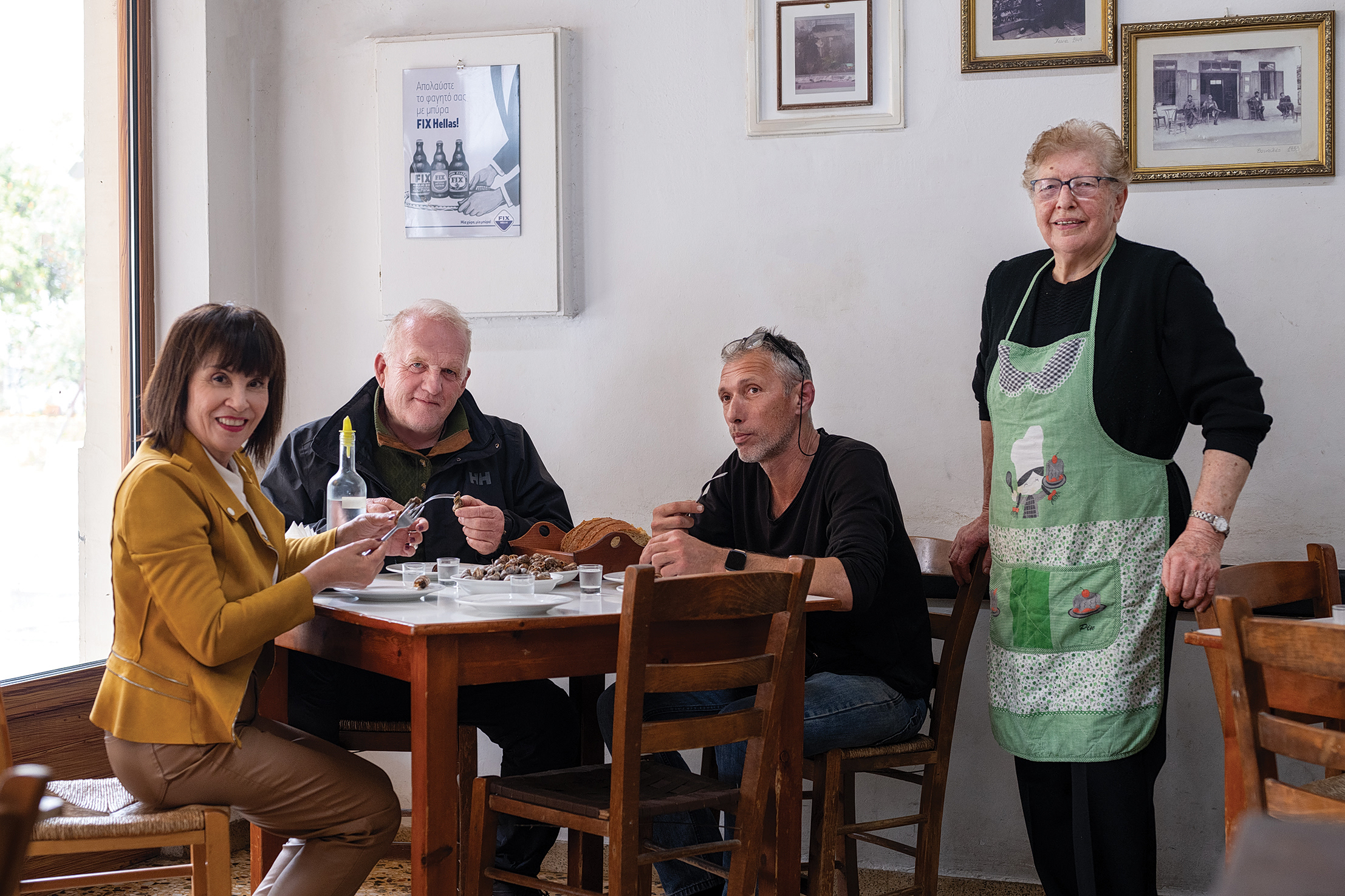 Η παράδοση στα χωριά δεν είναι κάτι που σχεδιάζεται, αλλά κάτι που βιώνεται με τον πιο φυσικό και αναμενόμενο τρόπο, ζωντανή και ακέραιη. Μαζί μας και σε αυτό το ταξίδι ήταν η Λένα Ηγουμενάκη, πρόεδρος του Γαστρονομικού Φεστιβάλ Κρήτης, αλλά και ερευνήτρια/συγγραφέας της κρητικής κουζίνας. Η Λένα, με πάθος για τον τόπο της και με γνώσεις που συλλέγει επισκεπτόμενη όλα τα χωριά του νησιού, δεν μας προσφέρει μόνο την καλύτερη ξενάγηση, αλλά μας δίνει την ευκαιρία να συνδεθούμε με τους ντόπιους, να μάθουμε τις ιστορίες τους, να καταλάβουμε την ψυχή τους. Στο νομό των Χανίων μαζί μας ακούραστη βοηθός και συνοδοιπόρος ήταν και η Σοφία Μαλανδράκη, περιφερειακή σύμβουλος Κρήτης, που είναι πάντα σε άμεση επαφή με τους συλλόγους.
