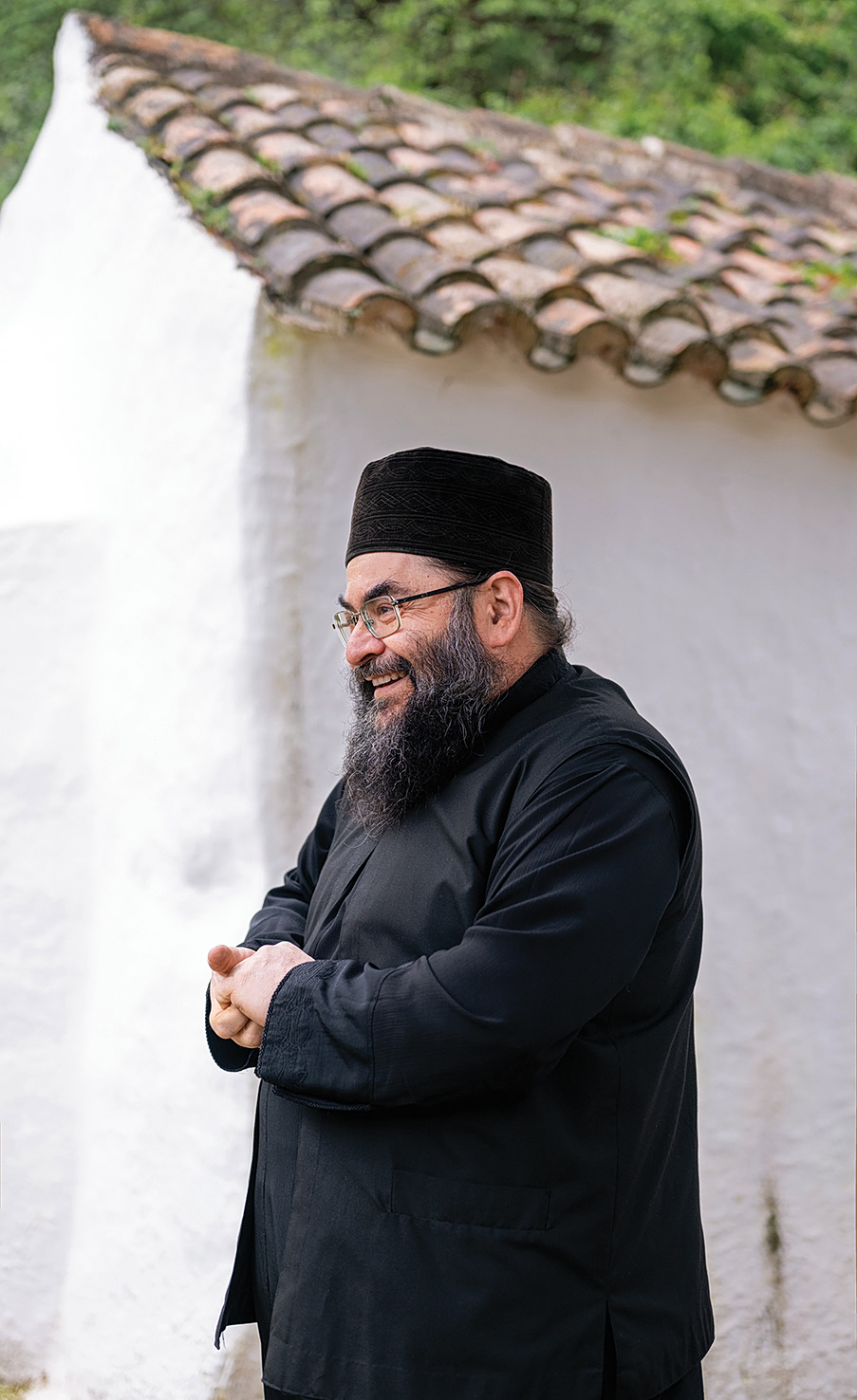 Ο πάτερ Γεώργιος Μωραϊτάκης μας ξενάγησε στο μικρό εκκλησάκι που βρίσκεται έξω από τη Δρακόνα και είναι αφιερωμένο στον Πρωτομάρτυρα Στέφανο. Φωτό: Αλέξανδρος Αλεξανδρής