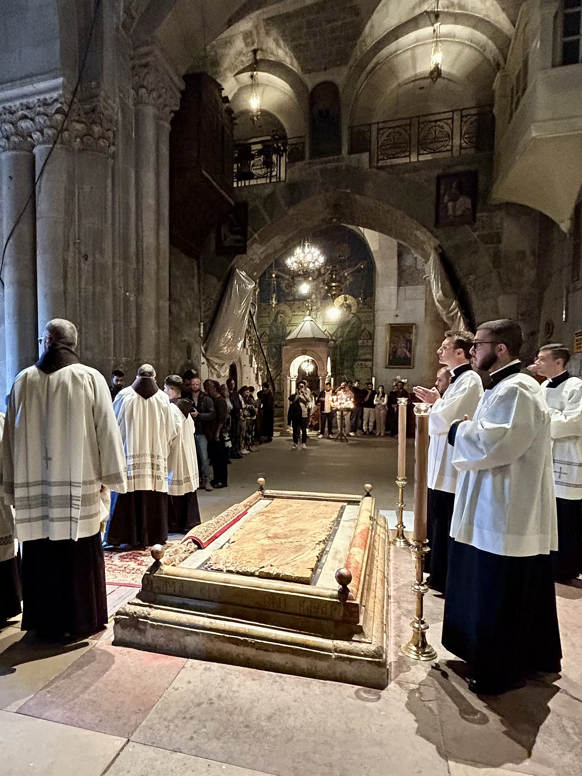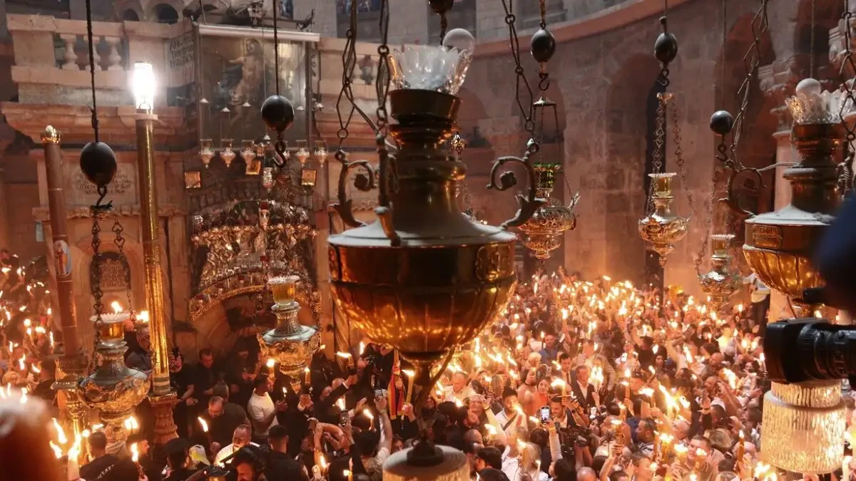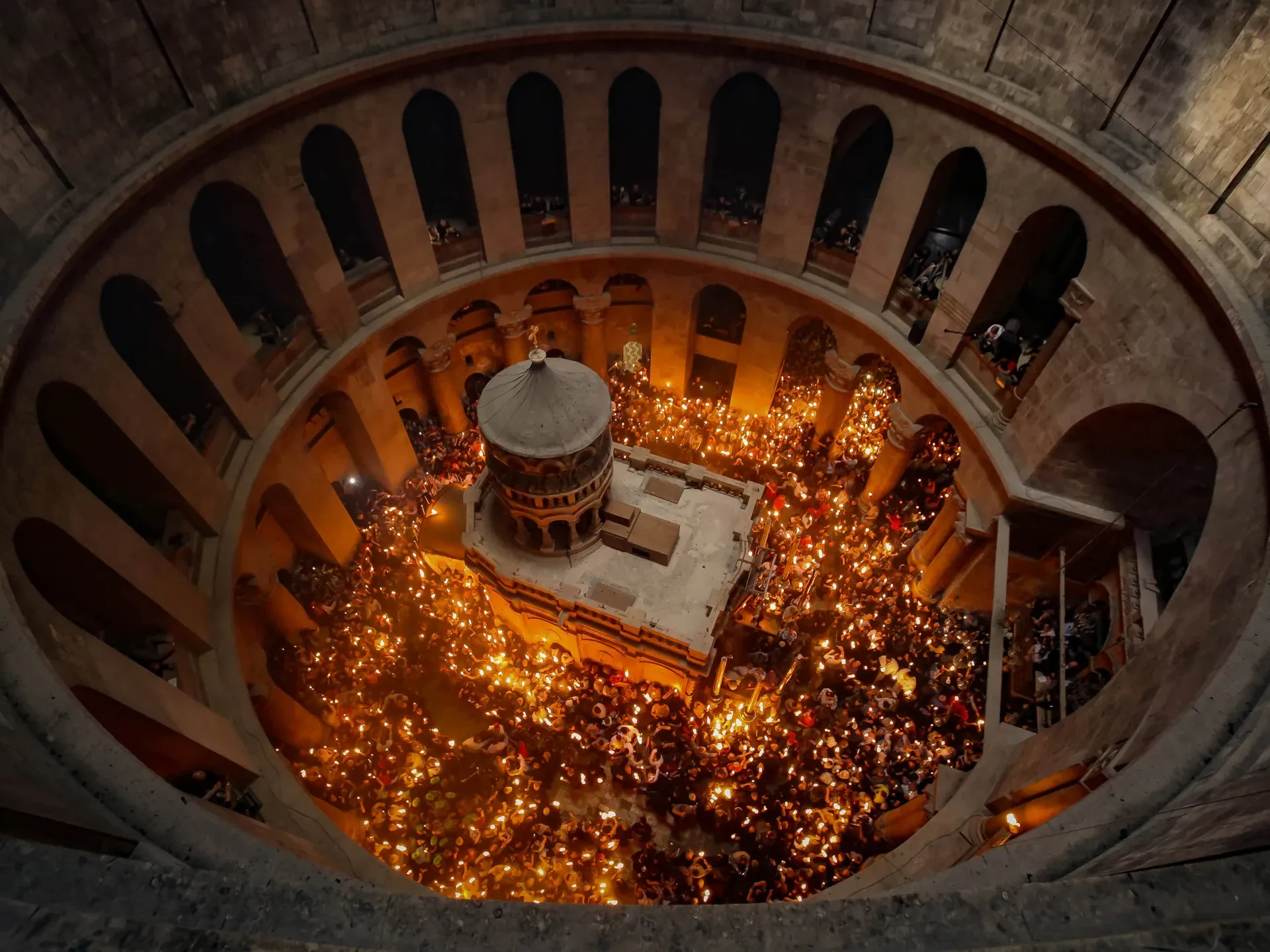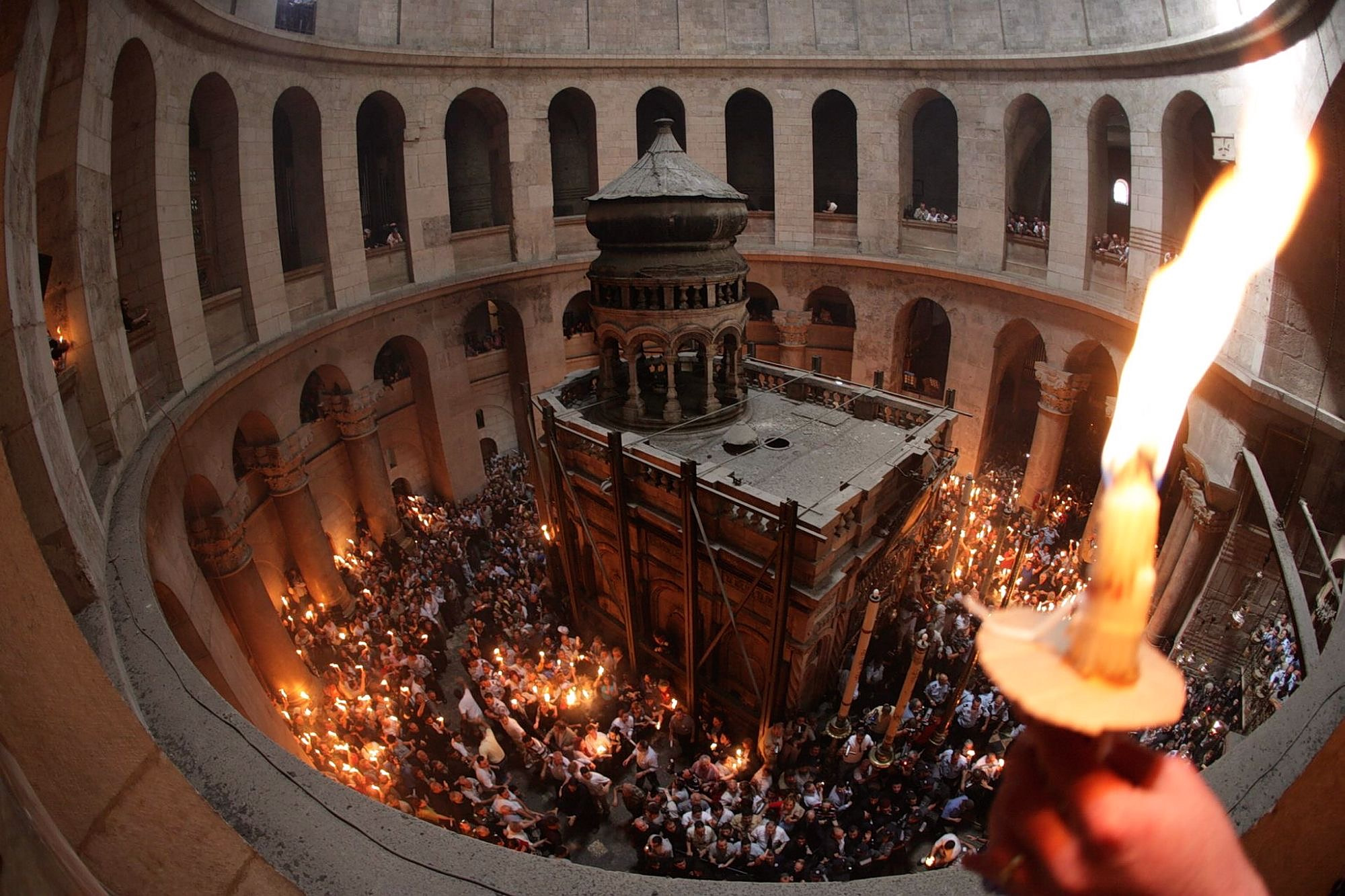Εκεί, στο υποβλητικό ημίφως του Παναγίου Τάφου, λαμβάνει χώρα κάθε χρόνο μια τελετή που μοιάζει με τη νοητή γραμμή που ενώνει το ιστορικό παρελθόν της Ανατολικής Μεσογείου με τη σύγχρονη γεωπολιτική πραγματικότητα.