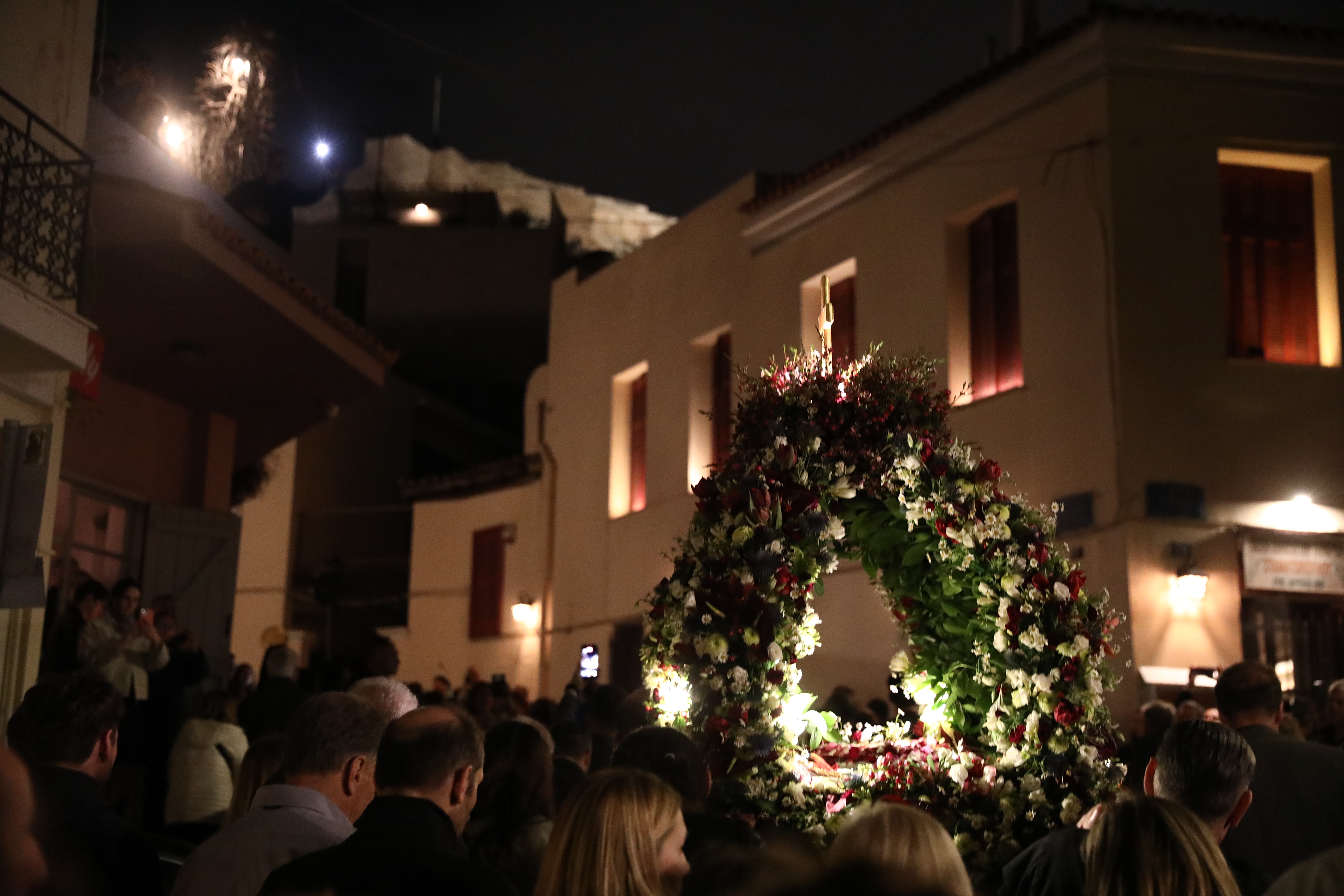 Χιλιάδες πολίτες κατέκλυσαν τα σοκάκια της Πλάκας, συμμετέχοντας στις λιτανείες των Επιταφίων που συνθέτουν ένα σκηνικό που μοιάζει να έρχεται από το παρελθόν. Οι πένθιμες καμπάνες και τα χιλιάδες τρεμάμενα κεριά δημιούργησαν μια υποβλητική ατμόσφαιρα, καθώς οι πομπές του Αγίου Νικολάου Ραγκαβά, του Αγίου Γεωργίου του Βράχου στα Αναφιώτικα και της Αγίας Αικατερίνης ελίσσονταν στα ιστορικά στενά.