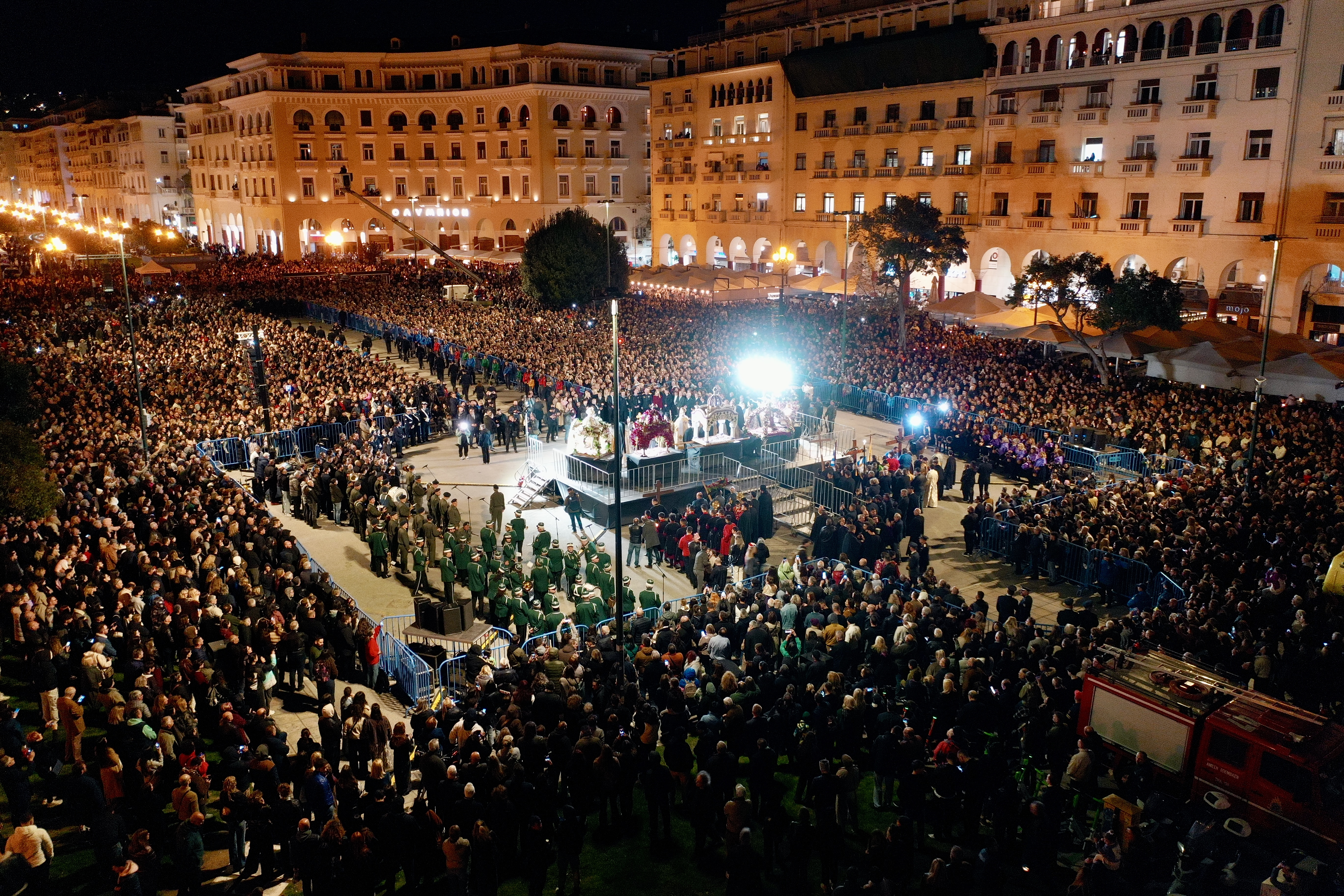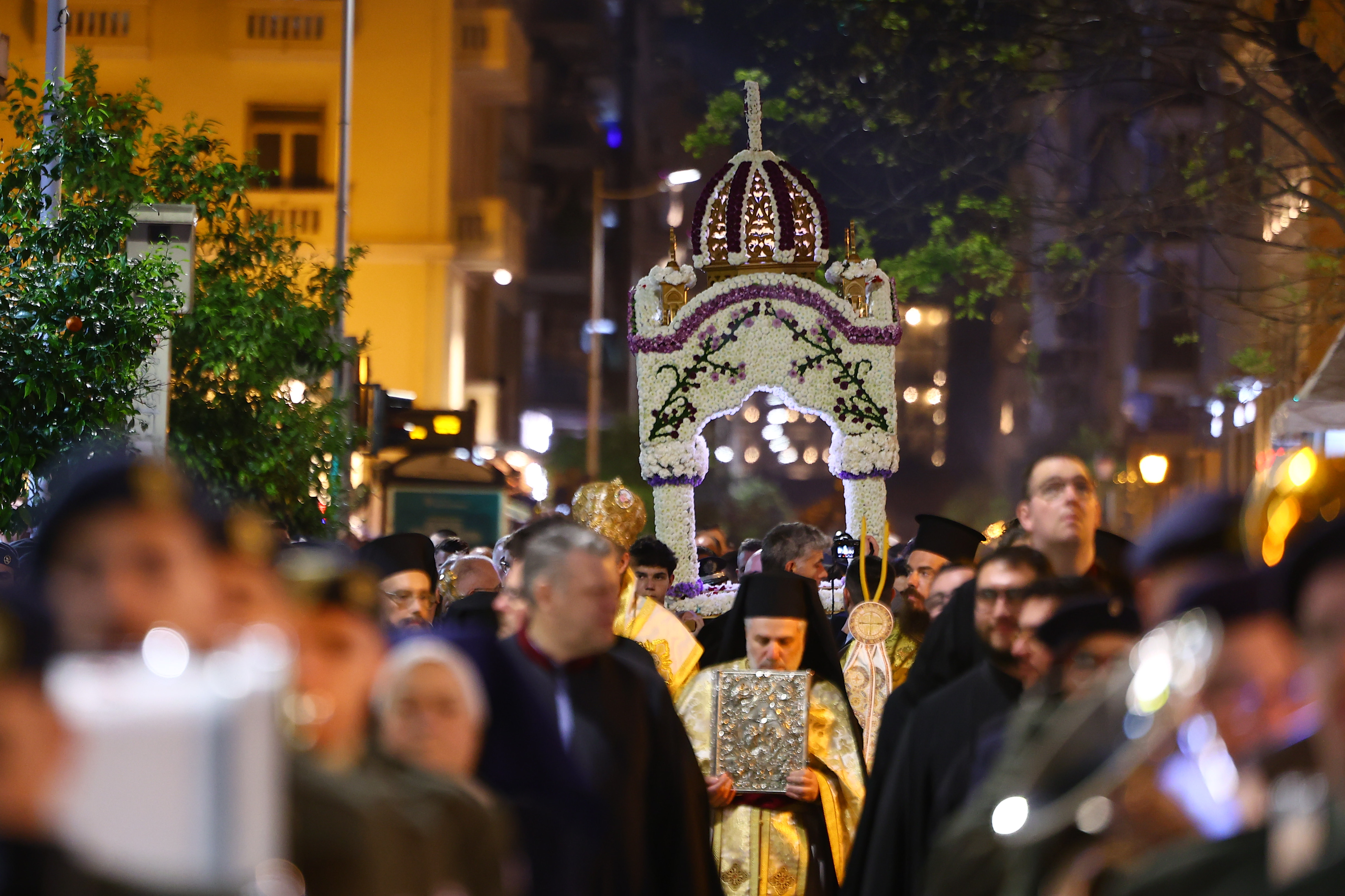 Σε ένα απέραντο σκηνικό κατάνυξης μετατράπηκε το ιστορικό κέντρο της Θεσσαλονίκη, με πλήθος κόσμου και χιλιάδες πιστούς να ακολουθούν τις περιφορές των Επιταφίων που κατέληξαν στην πλατεία Αριστοτέλους, όπου για τρίτη συνεχή χρονιά αντάμωσαν πέντε Επιτάφιοι από ναούς της πόλης, κορυφώνοντας τη συγκίνηση και τη συμμετοχή.