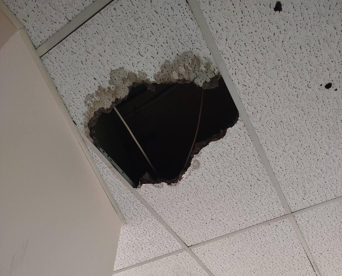 Συμπληρώνουν ότι «πτώσεις τμημάτων της οροφής είχαμε σε έξι διαφορετικούς χώρους στο Θριάσιο νοσοκομείο, το προηγούμενο διάστημα, χωρίς να έχει δοθεί ουσιαστική λύση».