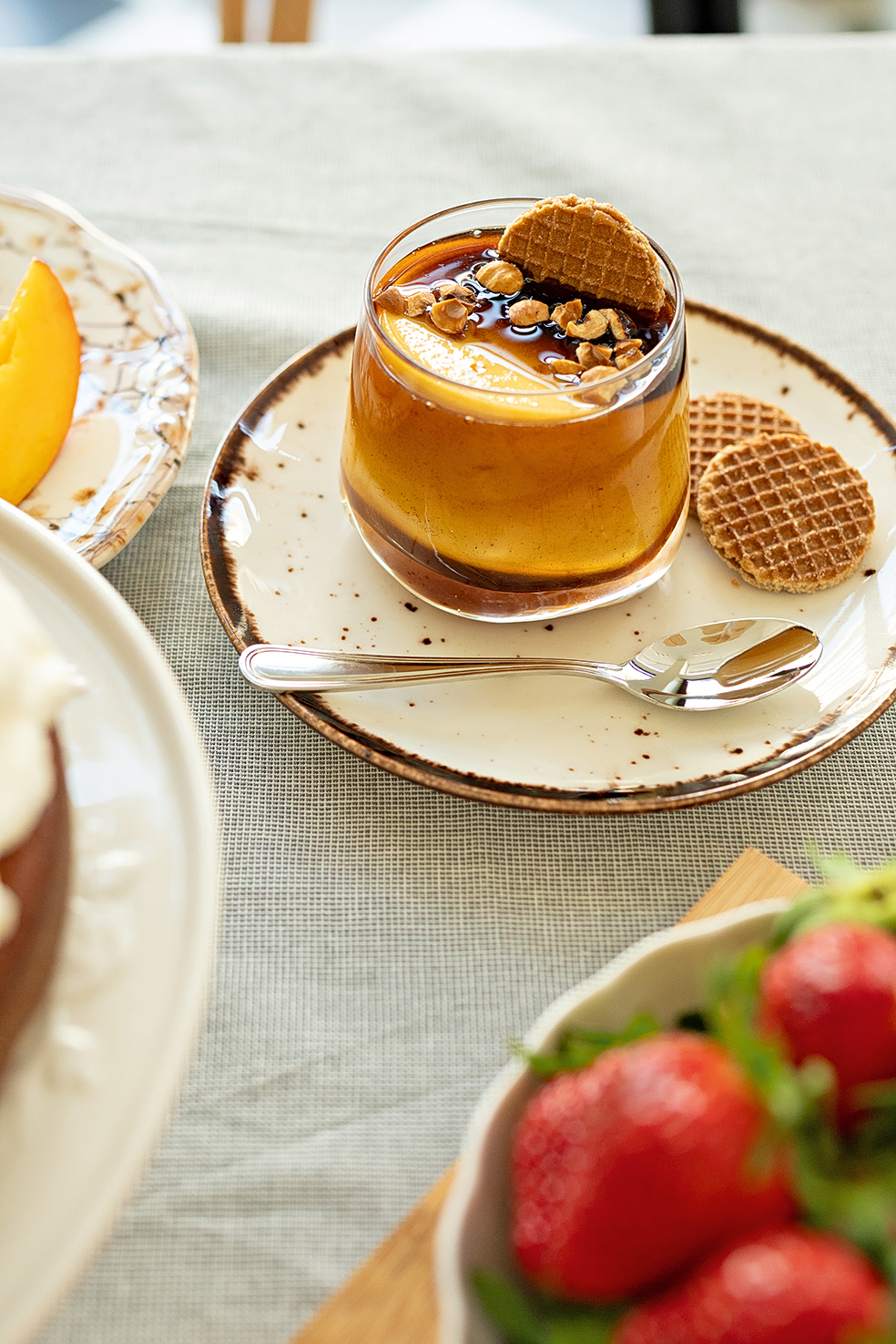 - Βγάζουμε τις κρέμες από το ψυγείο και προσθέτουμε από πάνω τη σος καραμέλας με αλατισμένο φουντούκι. Γαρνίρουμε με ένα μίνι μπισκότο stroopwafel και σερβίρουμε αμέσως.