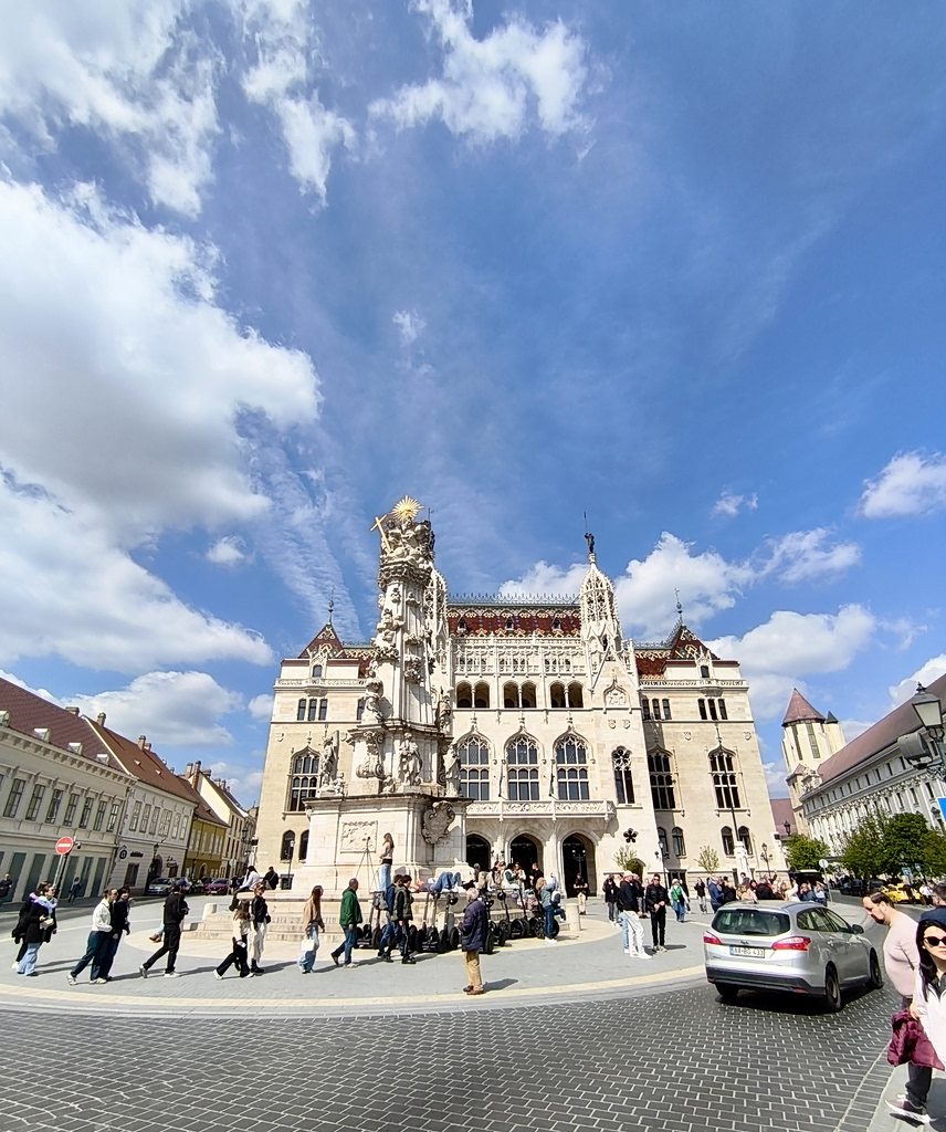 Συνεχίζουμε τη βόλτα μας και κατευθυνόμαστε προς τον κεντρικό πεζόδρομο της πόλης, την οδό Vaci. Στον δρόμο μας συναντάμε το δημαρχείο της πόλης και ο Κώστας μας λέει ότι ο δήμαρχος ήταν πολύ υπέρ του Όρμπαν και φανατικά κατά του Μαγιάρ, αλλά μετά τις εκλογές, το πρώτο πράγμα που έκανε ήταν να υψώσει μπροστά στο δημαρχείο τη σημαία της Ουκρανίας.