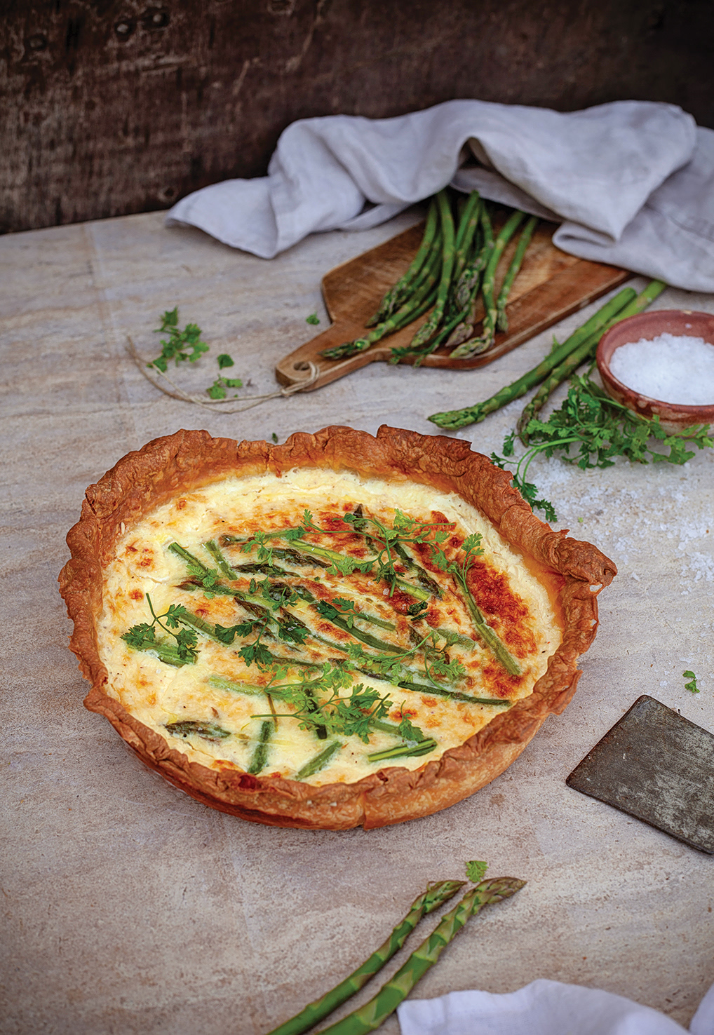 Τάρτα με σπαράγγια και μυρώνια