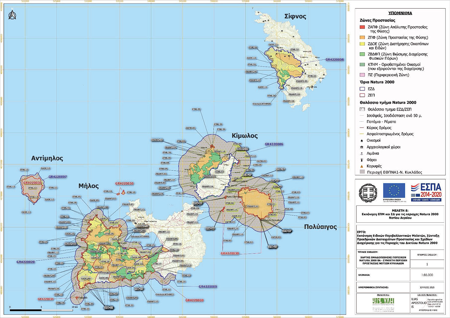 Ειδική αναφορά γίνεται για τις Ζώνες Προστασίας της Φύσης (ΖΠΦ) που αφορούν στο χερσαίο τμήμα των νησίδων Πολυαίγου και Αντίμηλου. Σε αυτές προτείνεται να επιτρέπεται η κατοικία για την εξυπηρέτηση της προστασίας και βέλτιστη διαχείριση του προστατευτέου αντικειμένου.