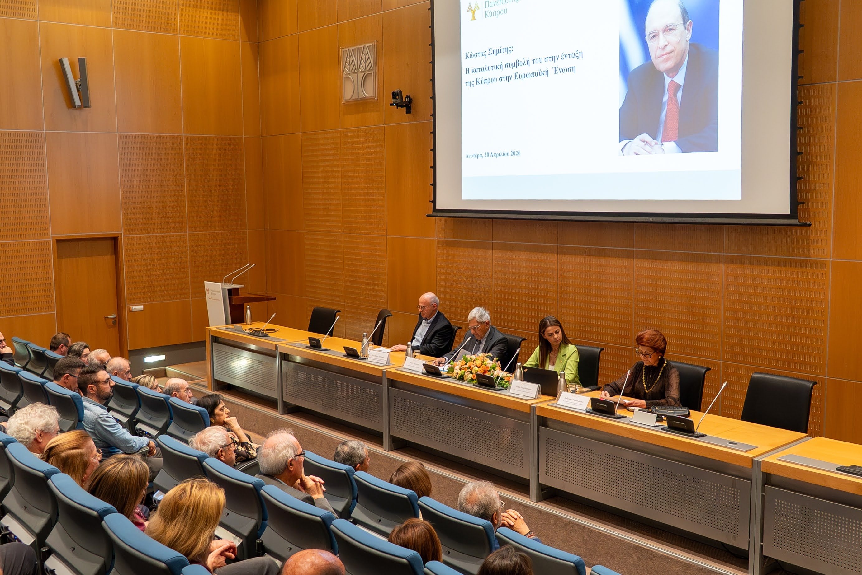Σπάνια μια τιμητική εκδήλωση για πολιτικό βρίσκει τόσο εύστοχα την ώρα της. Στις 20 Απριλίου 2026, στο αμφιθέατρο του Πανεπιστημίου Κύπρου στη Λευκωσία, η μνήμη του Κώστα Σημίτη συναντήθηκε με το παρόν με έναν τρόπο που δύσκολα θα μπορούσε να είχε σχεδιαστεί καλύτερα: ένας χρόνος από τον θάνατό του, 23 χρόνια από την υπογραφή της Συνθήκης Προσχώρησης της Κύπρου στην ΕΕ, και μια Ευρώπη που – υπό το βάρος πολέμων, γεωπολιτικών ανακατατάξεων και αμφισβήτησης της ίδιας της δυτικής συνοχής – αναζητά εκ νέου τους λόγους που την έκαναν αναγκαία. Και με την Κυπριακή Δημοκρατία να ασκεί αυτό το εξάμηνο την Προεδρία του Συμβουλίου της ΕΕ, το πλαίσιο μιλούσε από μόνο του.