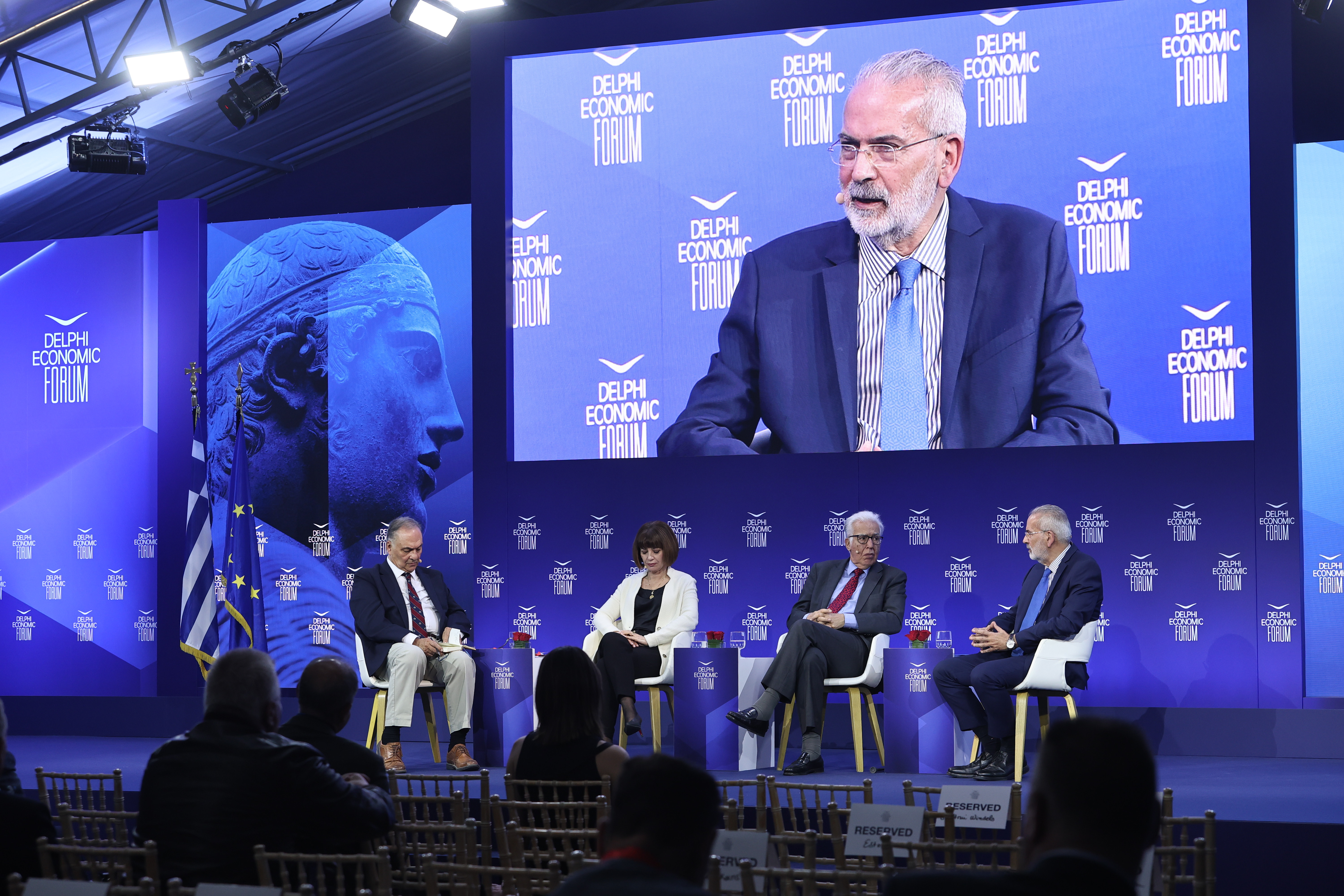 Ένα βλέμμα του πρώην αντιπροέδρου της κυβέρνησης και υπουργού εξωτερικών κ. Βενιζέλου κατά την διάρκεια απάντησης της Παπαδοπούλου ήταν αρκετό για να πέσει η θερμοκρασία υπό του μηδενός στους ασυνήθιστα ζεστούς Δελφούς.