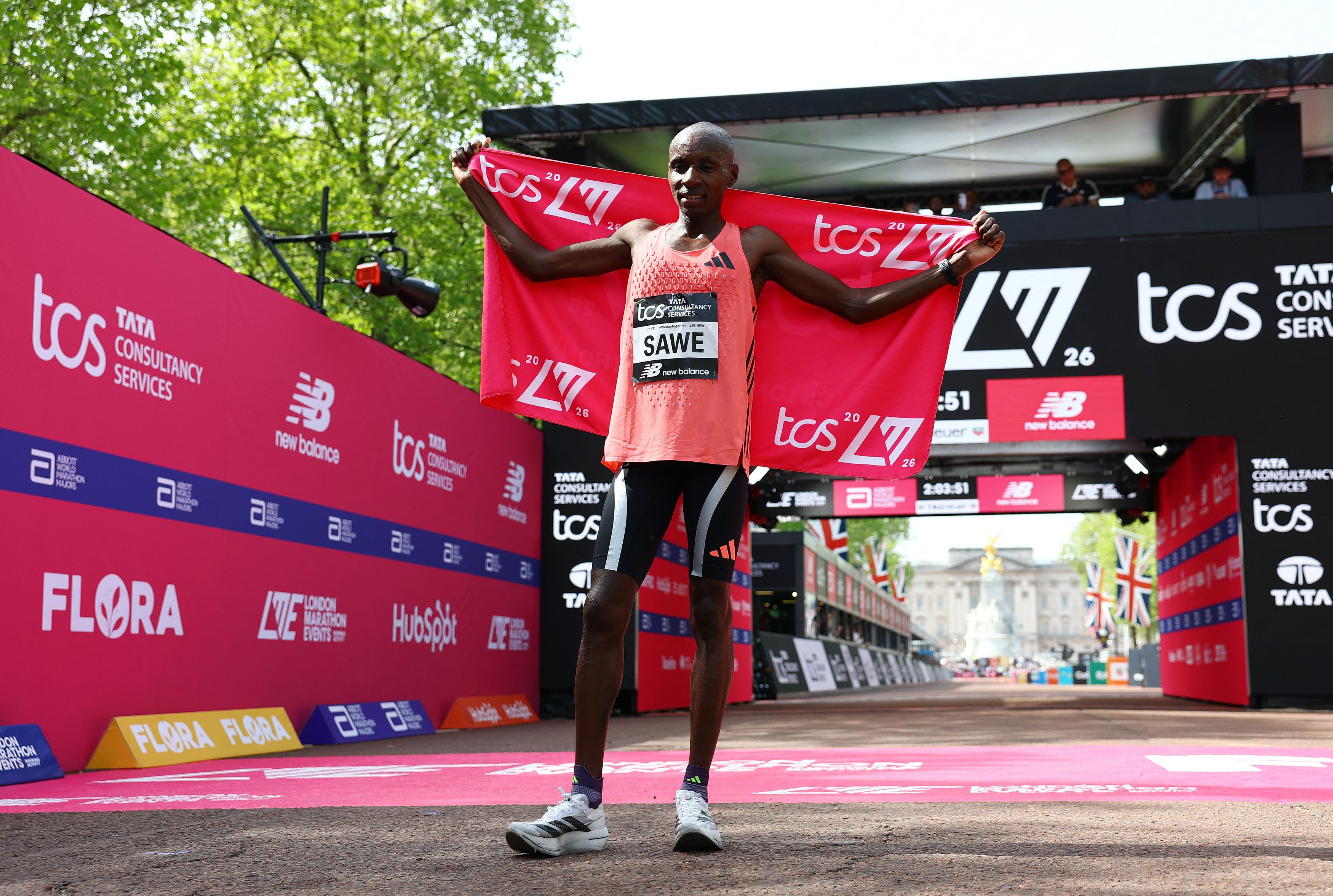 Ο Σάουε διέσχισε τη γραμμή του τερματισμού μπροστά από τα Ανάκτορα του Μπάκιγχαμ, σταματώντας το χρονόμετρο στο μυθικό 1:59:30. Με την επίδοση αυτή, κατέρριψε το προηγούμενο παγκόσμιο ρεκόρ των 2:01:25 που είχε σημειώσει ο Κέλβιν Κιπτούμ τον Απρίλιο του 2023, λιγότερο από έναν χρόνο πριν από τον αδόκητο θάνατό του. Επιπρόσθετα, ξεπέρασε ακόμα και το 1:59:40 που είχε κάνει ο Έλιουντ Κιπτσόγκε (Κένυα) το 2019 στη Βιέννη σε προσχεδιασμένο αγώνα.