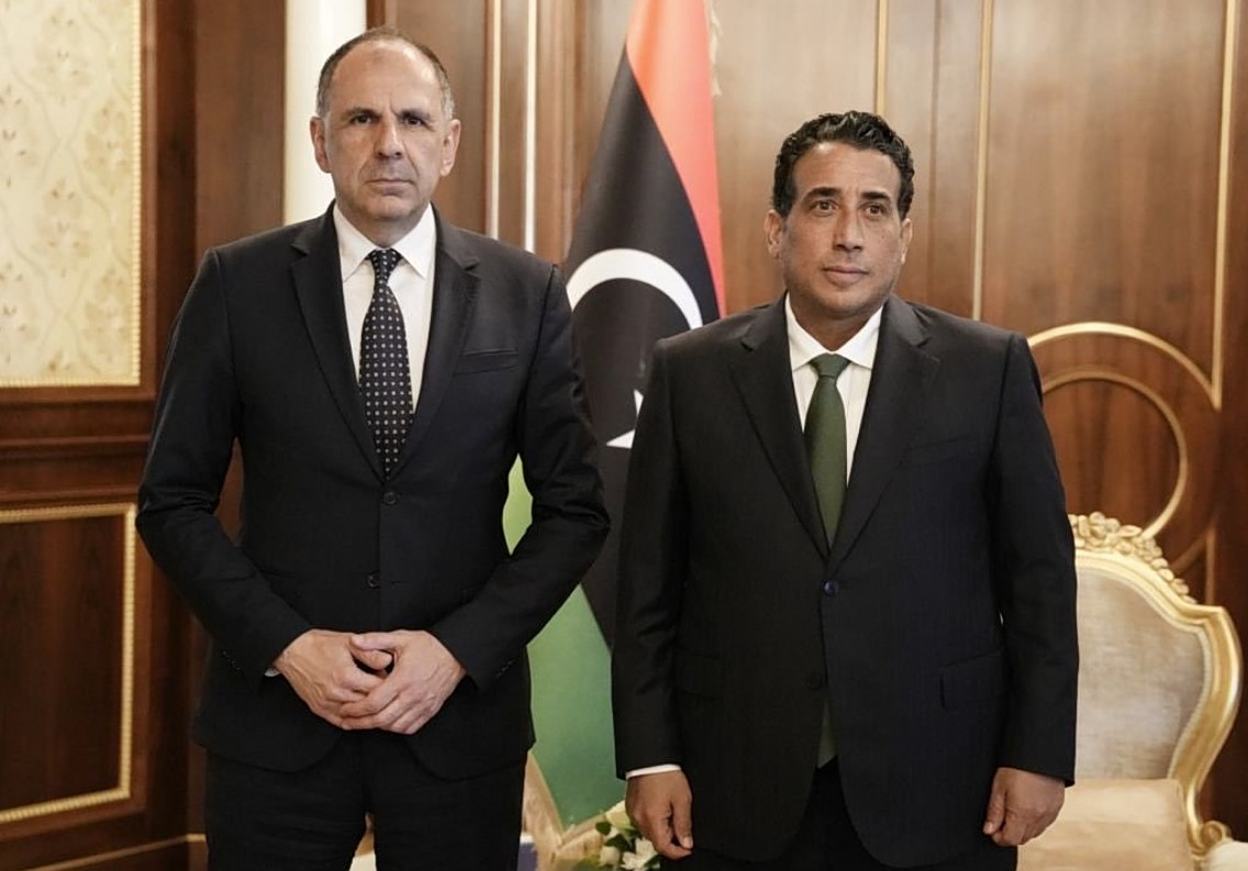 Να διατηρήσει ανοικτούς διαύλους επικοινωνίας, ώστε να εξασφαλίσει έστω τη μίνιμουμ δυνατή επιρροή στο μεταβατικό καθεστώς της Τρίπολης- δηλαδή σε ένα εκ των πραγμάτων δύσβατο πεδίο εξαιτίας της τουρκικής παρουσίας- επιδιώκει η Αθήνα. Αυτός ήταν, συμπερασματικά, ο στόχος του δεύτερου ταξιδιού- εντός περίπου εννέα μηνών- του υπουργού Εξωτερικών Γιώργου Γεραπετρίτη στην πρωτεύουσα της Λιβύης, όπου και συναντήθηκε κατά σειρά με τον ομόλογό του, τον πρωθυπουργό της κυβέρνησης Εθνικής Ενότητας Αμπντούλ Χαμίτ Ντιμπεϊμπά και τον επικεφαλής του Προεδρικού Συμβουλίου Μοχάμεντ Μένφι.