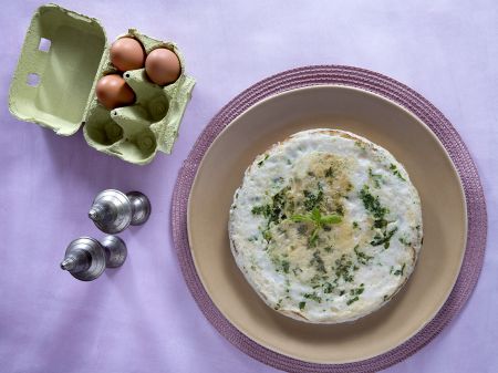 Προσθέτουμε ασπράδια, ανθότυρο και δυόσμο και απολαμβάνουμε.